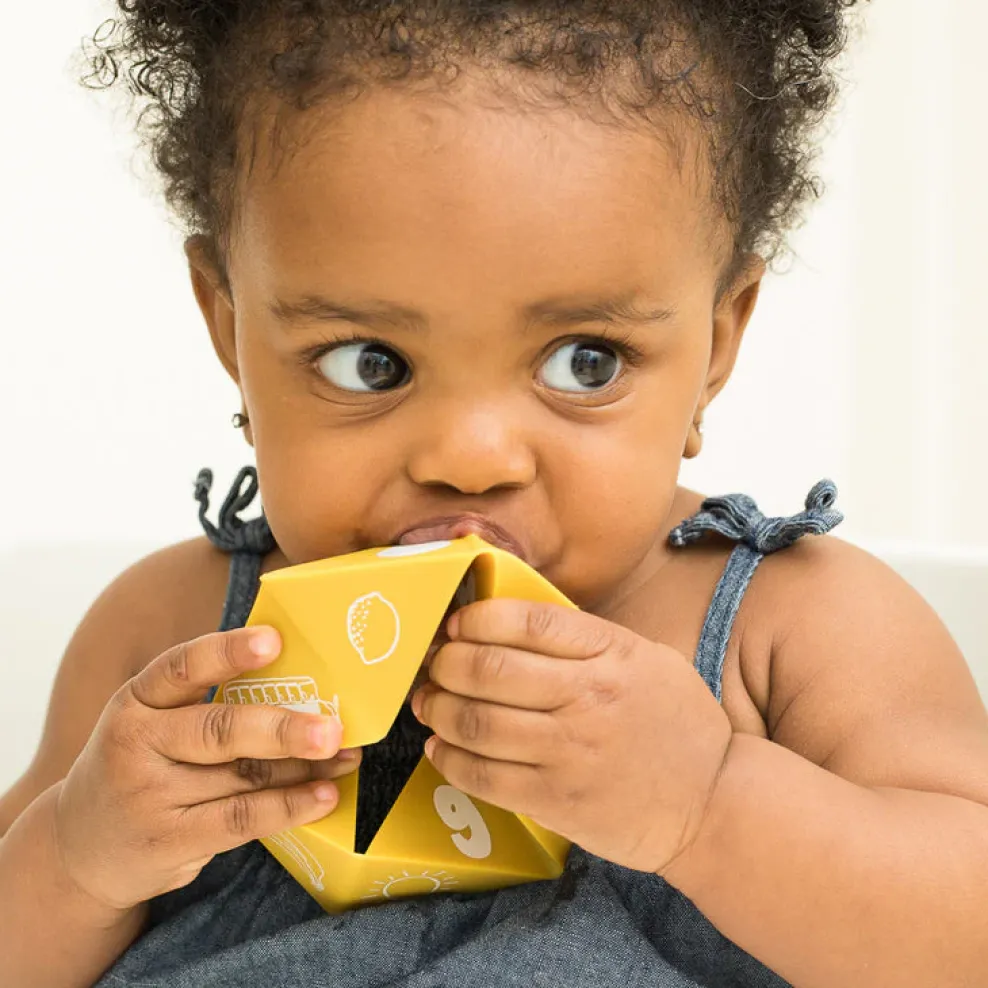 The newest addition to our teether toy line up and in the running for MVP (most valuable product), the Beginner Spinner is a unique teething and learning exploration toy designed to grow-with-baby. It’s safe to chew on and the mix of points, creases and smooth surfaces provide multiple relief options for sore gums and little teeth.