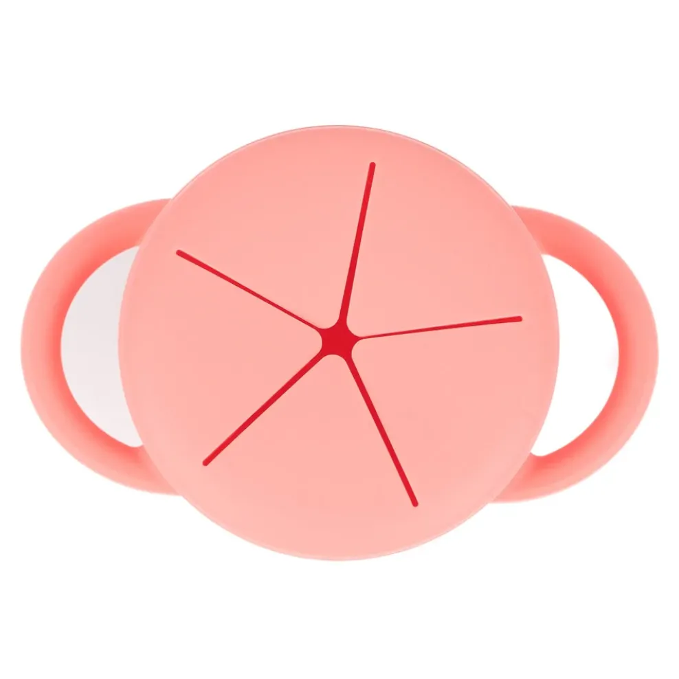 Exclusively ours, the Happy Snacker is the first two piece silicone snack cup! No more trails of crumbs to pick up thanks to our snap tight lid – go ahead and put the vacuum away. Designed with easy grip handles for little hands to independently self-feed. Hold the applause because there’s more… The horizontal handles allow the cup to securely fit in the car seat and stroller cup holders. The simple two-piece design makes pouring in snacks a breeze! The mess proof, tight lid stays in place. The soft silicone opening allows little hands to easily access food and prevents spills. Just pop the lid off when you are ready to clean it, each piece is dishwasher safe. Happy snacking! FEATURES -Snug fit and removable lid -Fits most cup holders and snack trays -Soft opening -Great for home or on-the-go