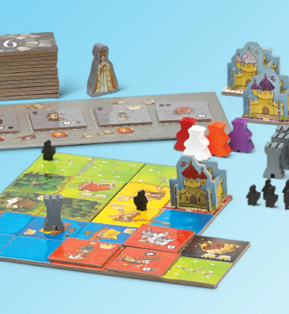 You are a royal, seeking new lands to expand your ever-growing kingdom. Explore and conquer the different terrains, and develop the best and richest territories for your people. Scour lands full of wheat fields, forests, grasslands, swamps, mines, and towns, diversifying your kingdom’s riches along the way. Tax the lands wisely to fund the construction of your towns, pick the buildings you erect carefully, and try to win the Queen’s favor – all while making sure your plans aren’t foiled by the Dragon’s flame. Make sure to strategize and acquire carefully, as others are also competing for the same lands, a stake in the riches, and the heart of the Queen!