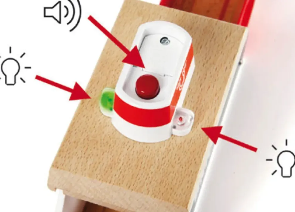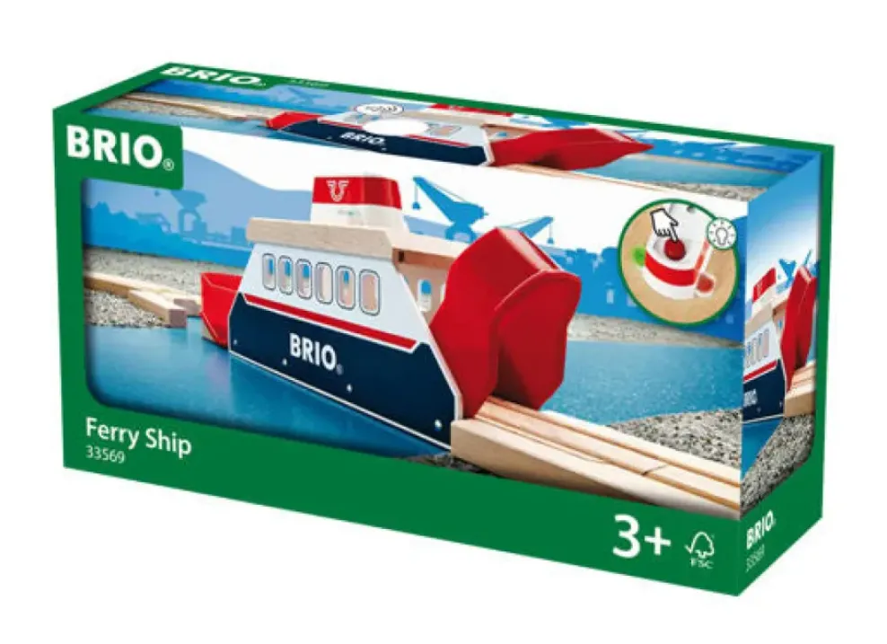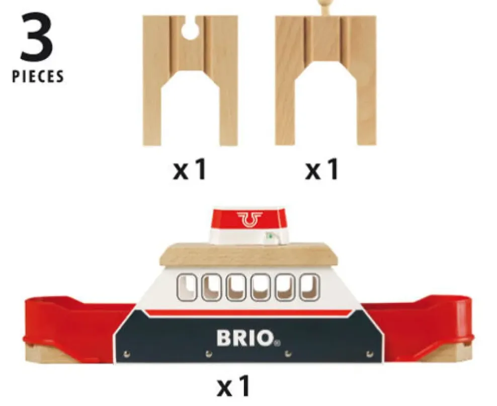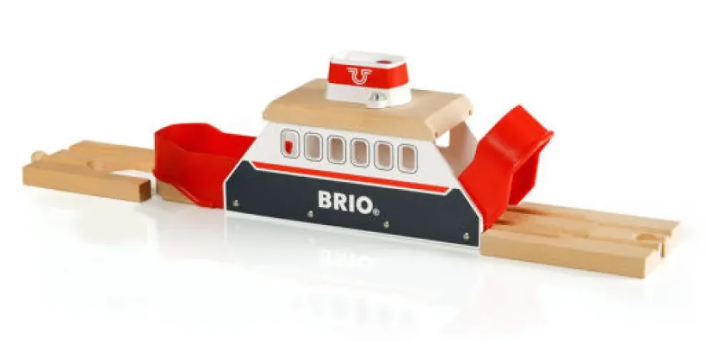 Ship Ahoy! Trains don’t run on water, but ferries do. So transport the train on to dry land with the BRIO Ferry. The ship features light and sound that is activated with a simple push of a button. With the two included docking tracks, the ferry door is opened upon arrival.
