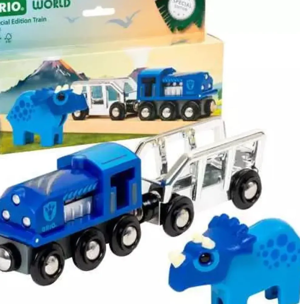 Add the 36111 2025 Special Edition Train to your BRIO World! With a silver-blue dino theme and Triceratops, this limited-edition train is a must-have!
