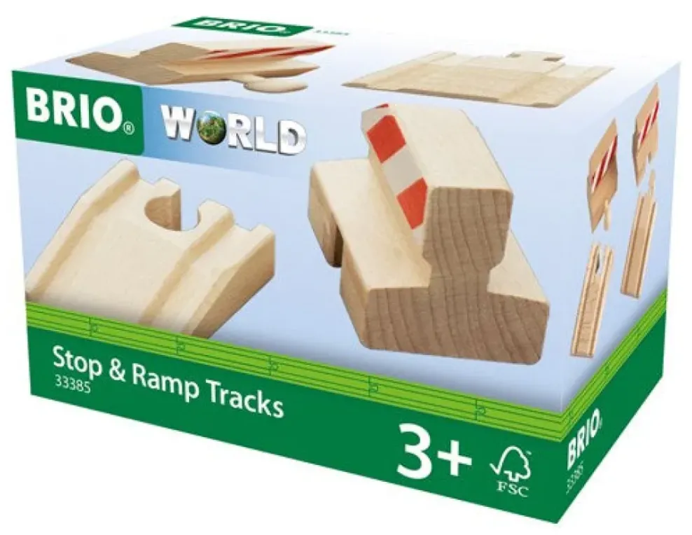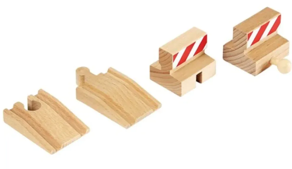 Expand the layouts in the BRIO rail world with the Ramp & Stop Track Pack. Add these pieces to complete the train line with these special ized tracks. Includes 2 ramp tracks and 2 track stops.