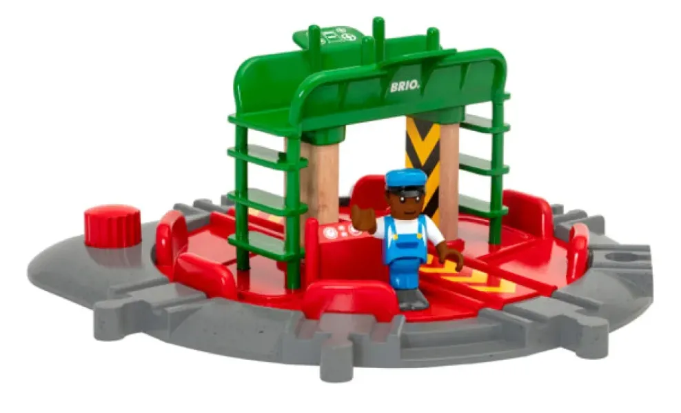 With its seven different track connection points, the 33476 Turntable & Figure truly is a central piece to any BRIO World railway. There’s enough space on the turntable to fit any engine from the BRIO World – simply twist the red knob and watch the whole central unit rotate and click into position. Also included is a train engineer figure to work the turntable from his two-level station.