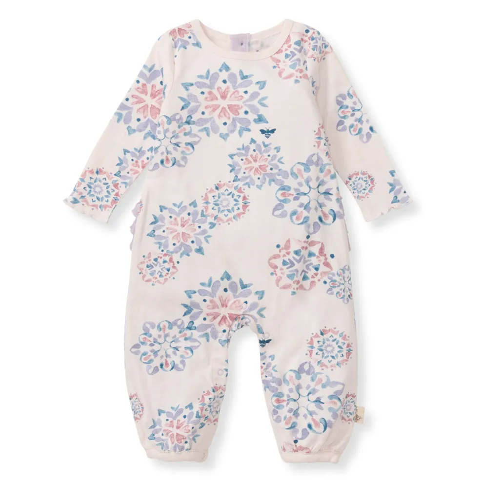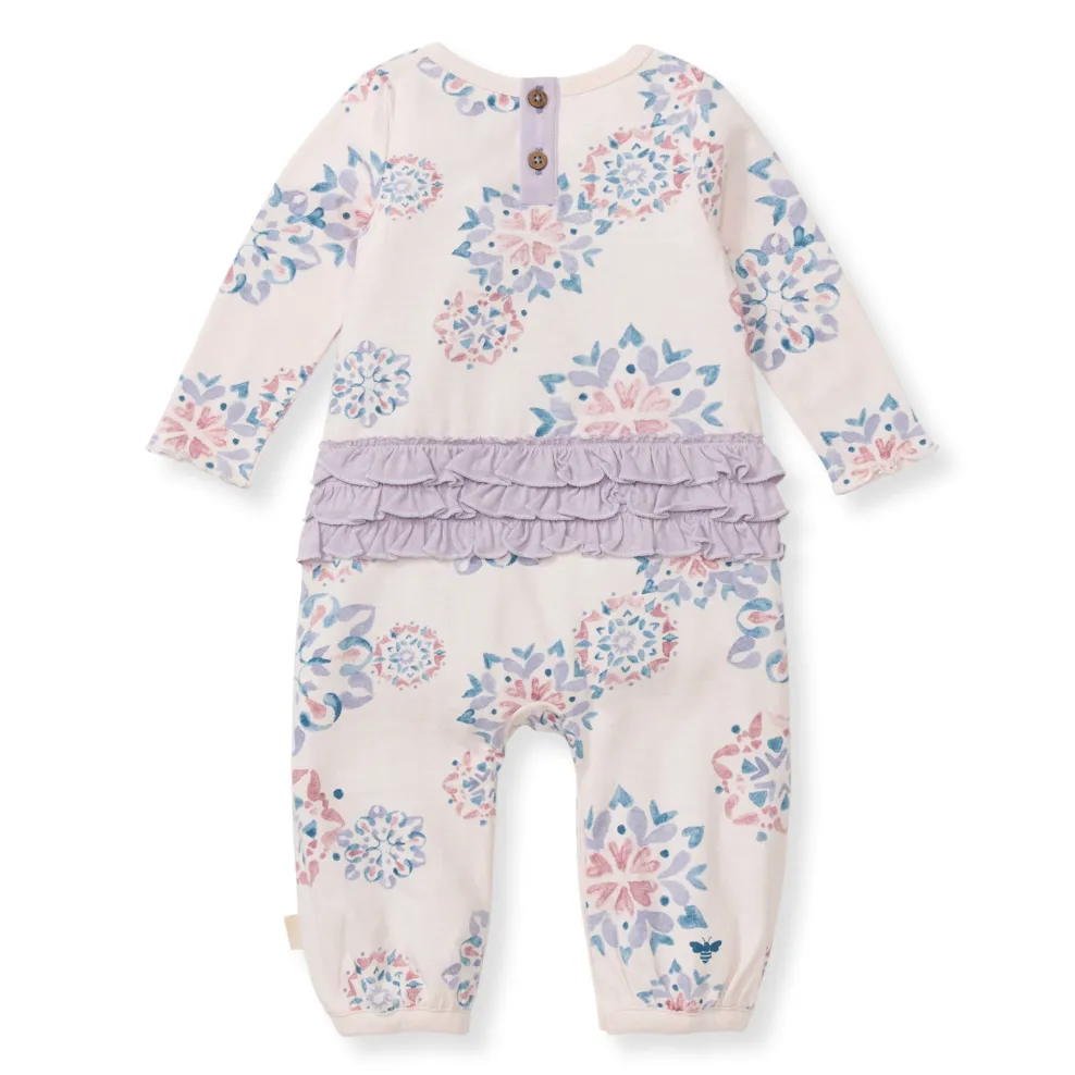 - Center back placket and ruffle on the bum
