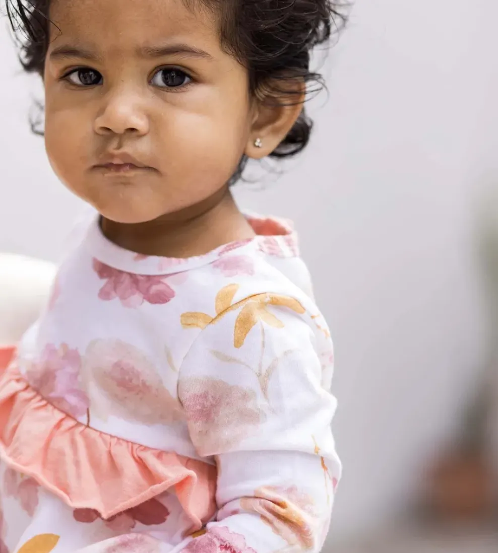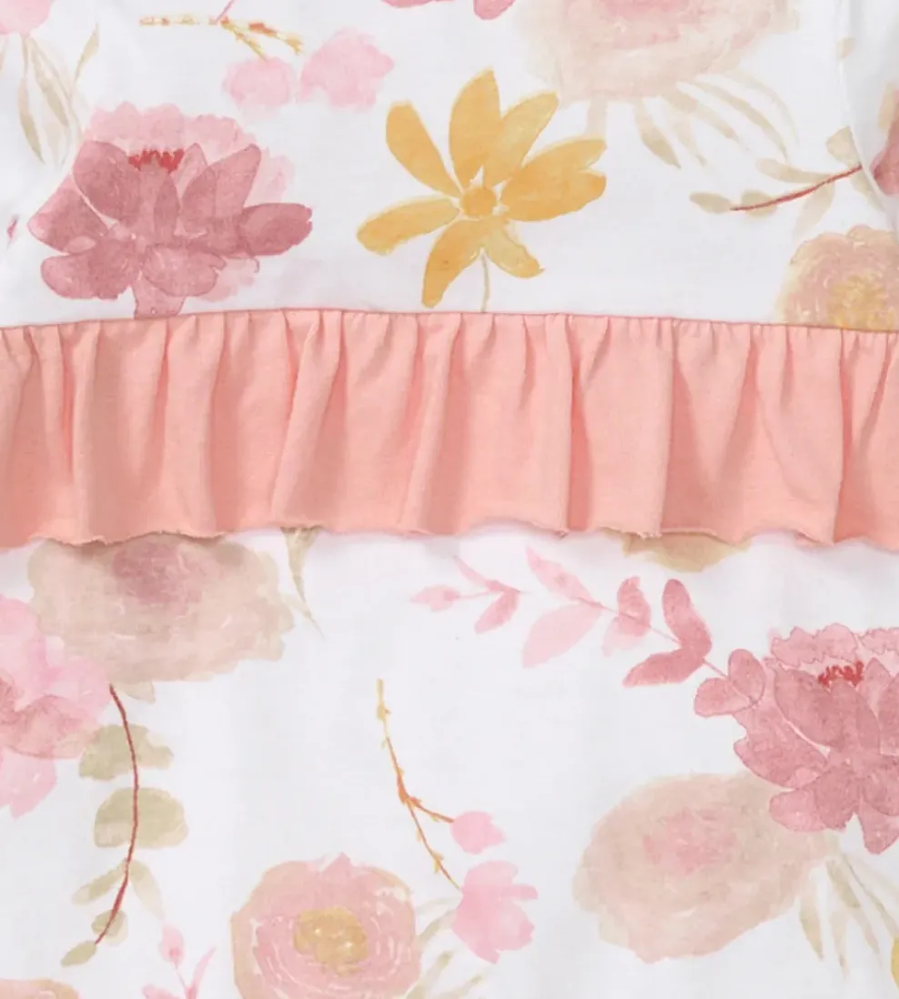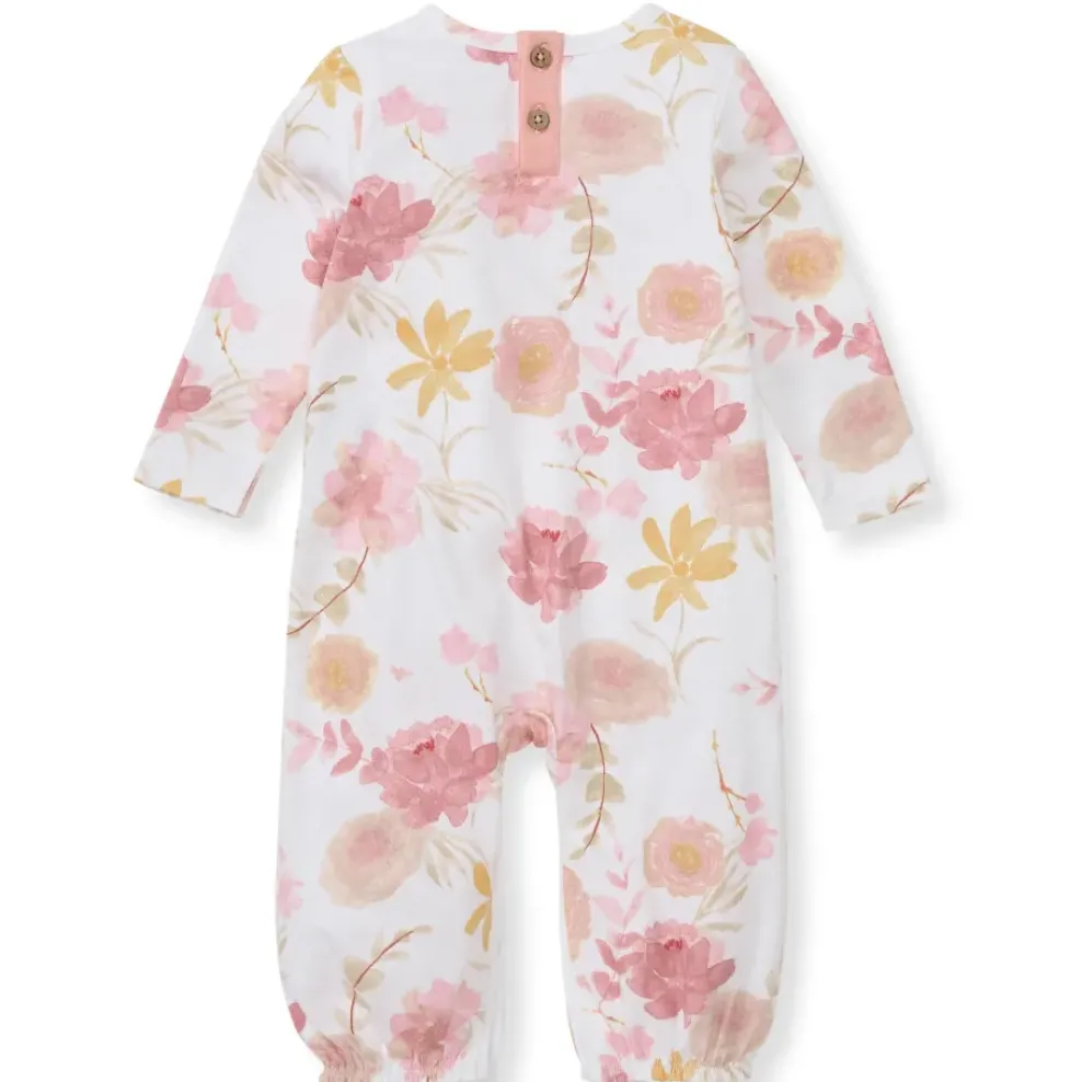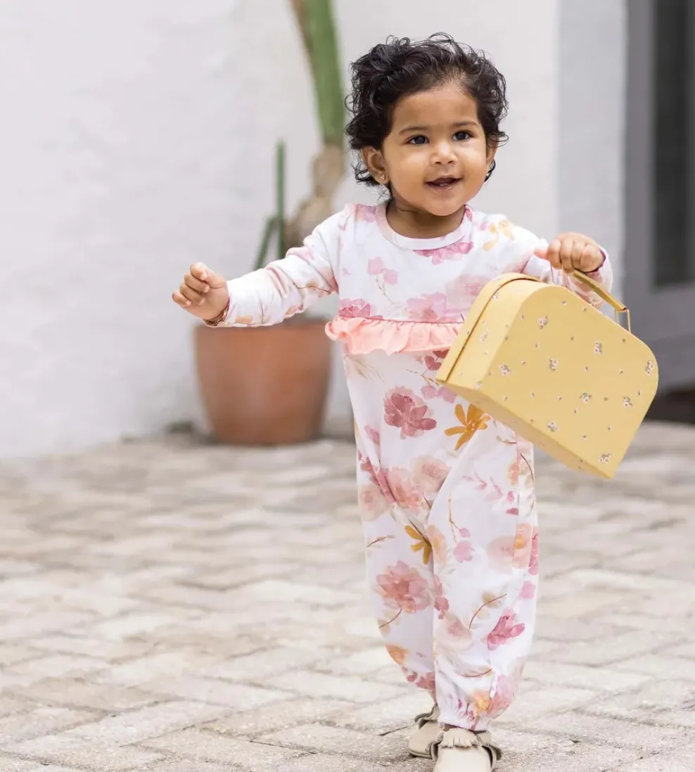 A touch of floral whimsy for your little one with this watercolor jumpsuit.