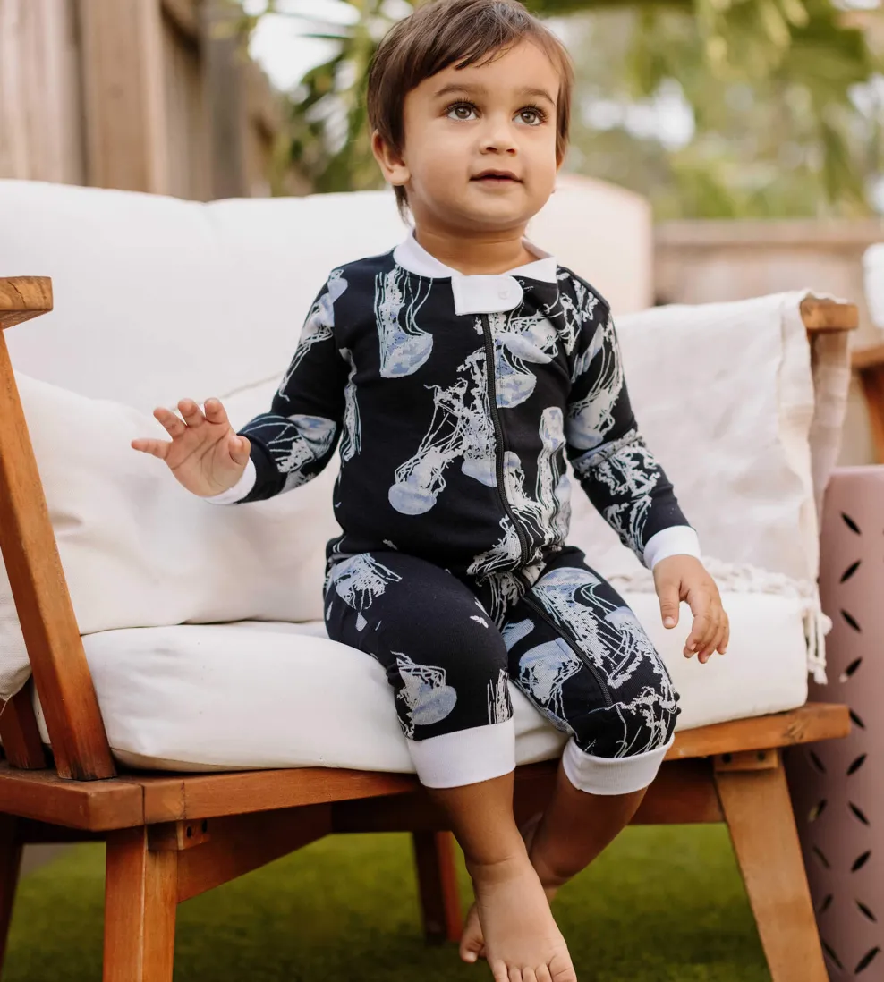 These jelly fish don’t sting! Cozy up in these hand painted jelly fish pajamas & accompanying tie dye jammies. Perfect for mixing & matching!