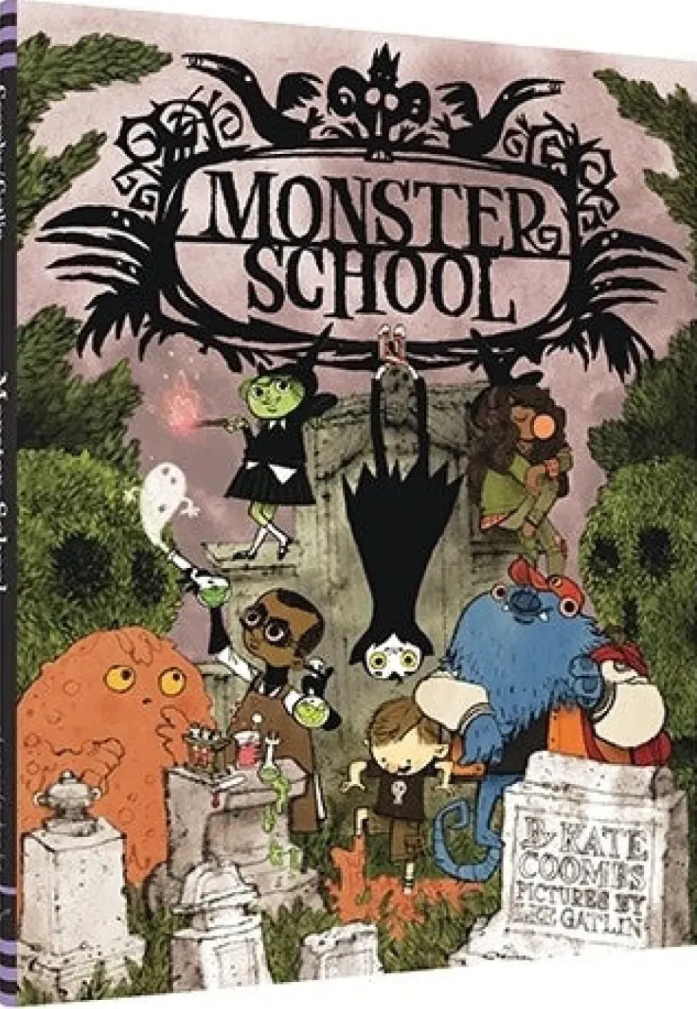 Twilight’s here. The death bell rings. Everyone knows what the death bell brings—it’s time for class! You’re in the place where goblins wail and zombies drool. (That’s because they’re kindergartners.) Welcome to Monster School. In this entertaining collection of poems, award-winning poet Kate Coombs and debut artist Lee Gatlin bring to vivid life a wide and playful cast of characters (outgoing, shy, friendly, funny, prickly, proud) that may seem surprisingly like the kids you know . . . even if these kids are technically monsters.