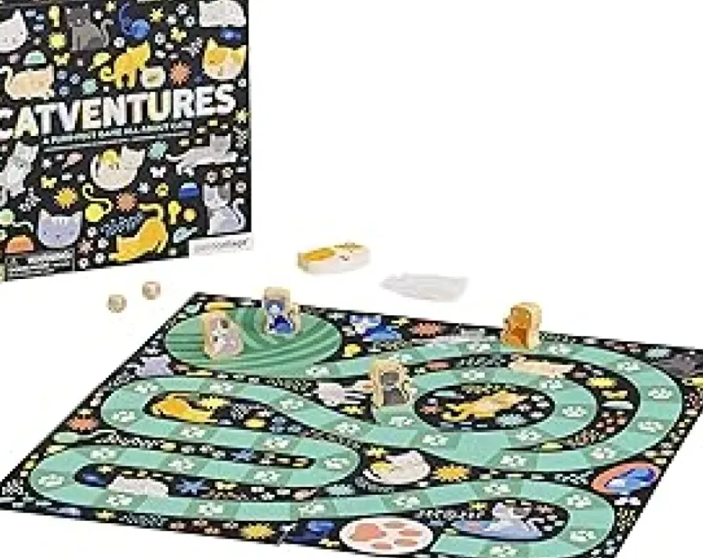 - FUN CAT BOARD GAME – The Catventures Board Game from Petit Collage is an a-meow-sing kid’s game that will test just how well you know cats and the adventures they get into!