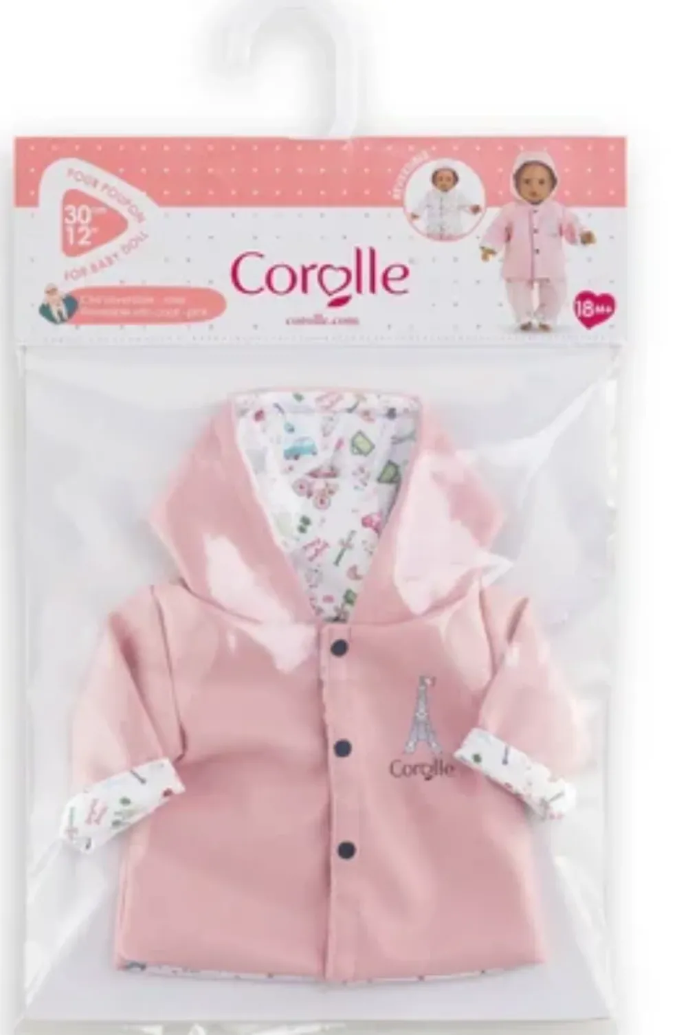 Give your child memorable playtime with this coat that invites exploration and imagination.”>On one side, a vibrant pattern that evokes the picturesque streets of Paris, on the other, a simple and elegant finish that goes with any doll’s wardrobe. This coat is one of the doll accessories that encourage exploration and creativity.