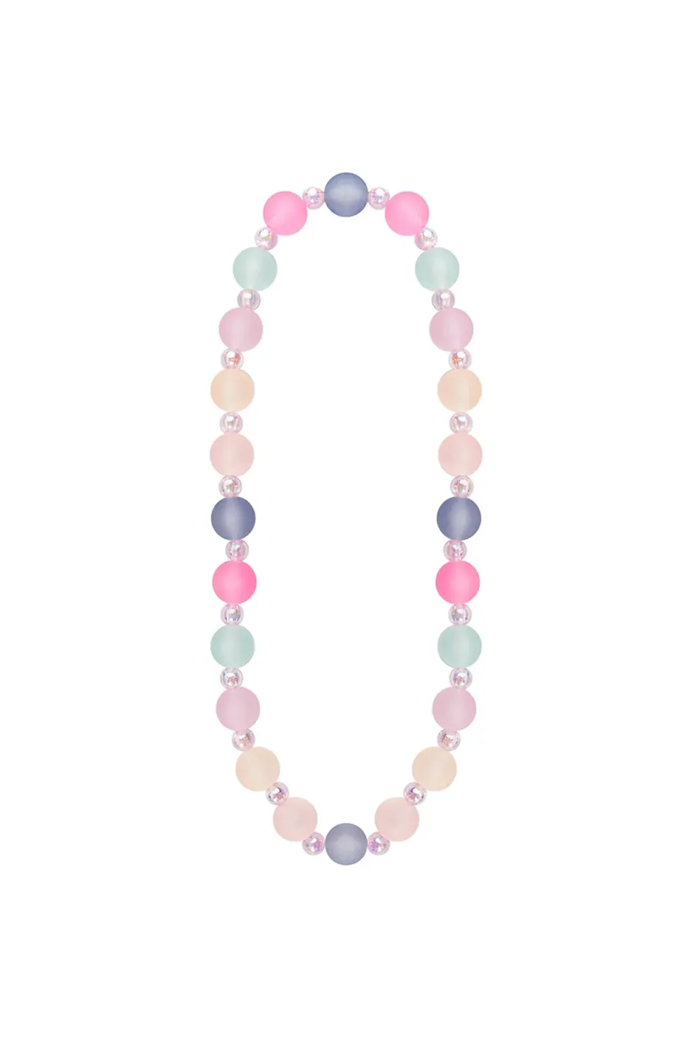This bumpy bead bracelet is made with blue, pink, and purple frosted beads, alternating between smaller clear beads. Be sure to check out its matching bracelet!