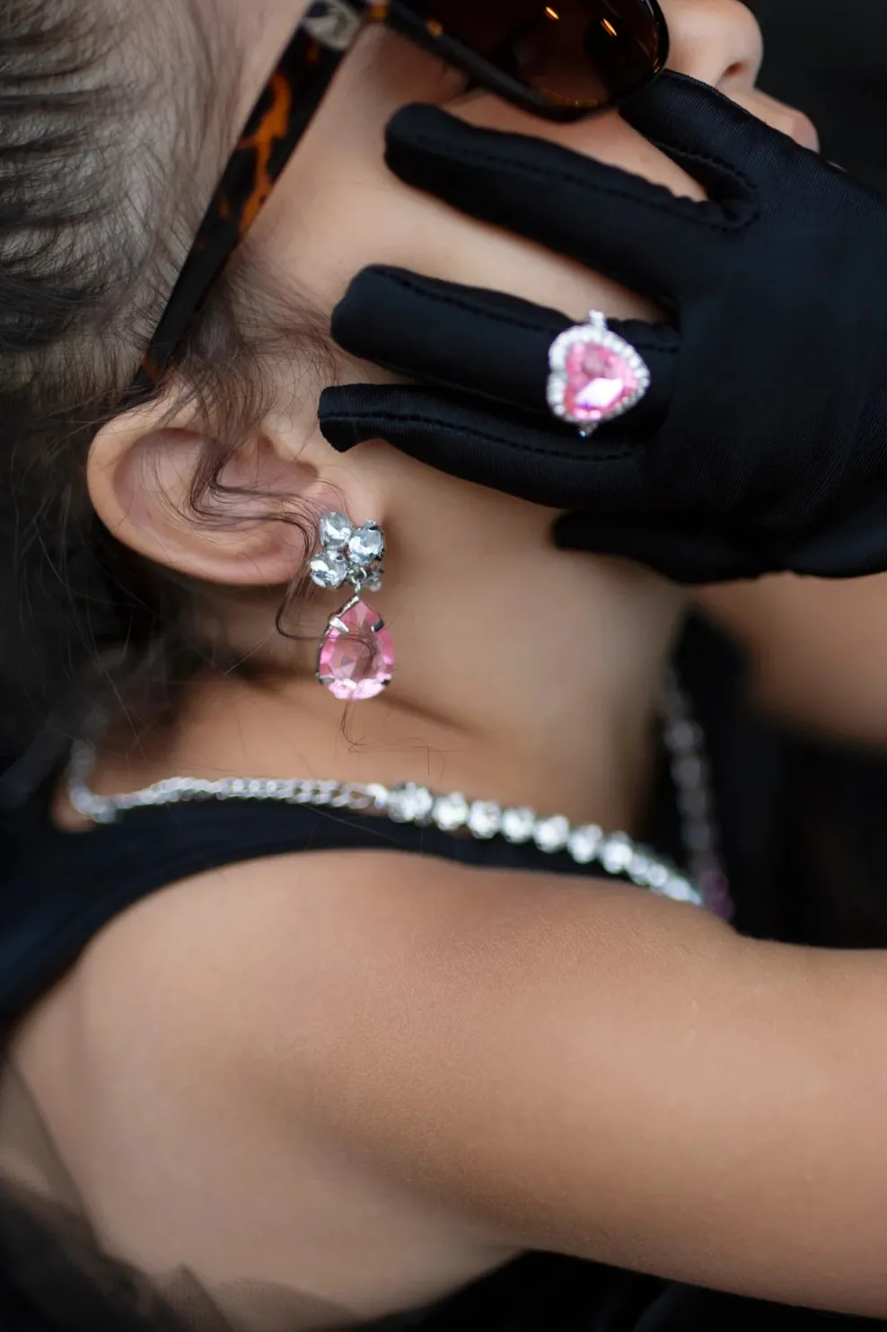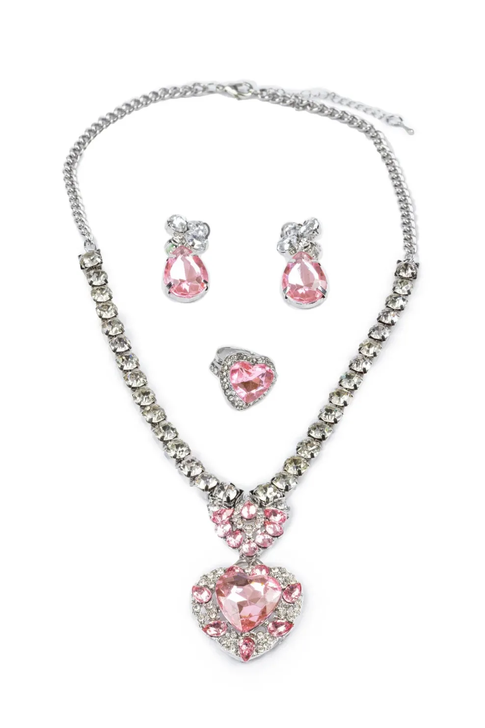 Classic glamour gets a modern twist with The Marilyn 4 Piece set. This bold and beautiful boxed-set includes blue & silver clip-on earrings, a heart-shaped ring, and a coordinating necklace jam-packed with jewels.
