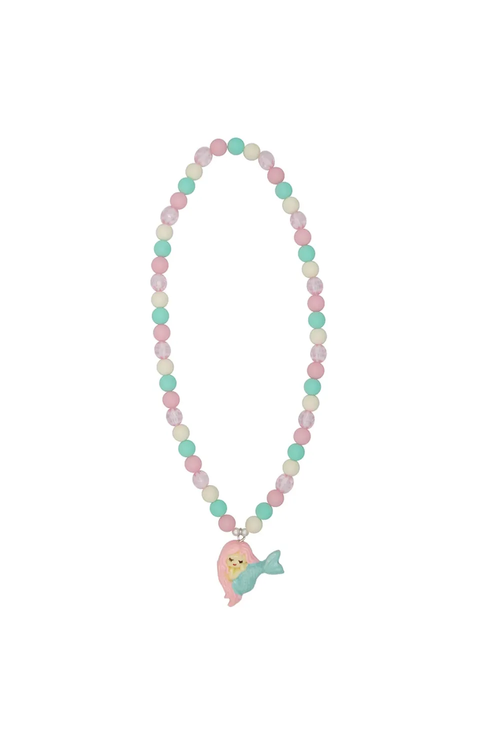 Capture the mystical mermaid vibe with this matte mermaid necklace. With chunky beads and a mermaid pendant. Available in pink and purple!