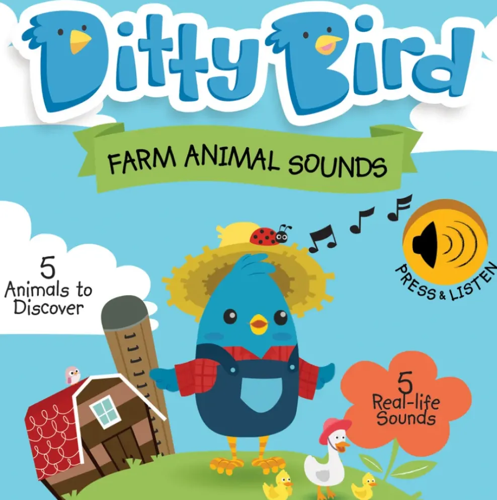 Press the sound button on each page to listen to real-life animal sounds and ‘moo’, ‘baa’, ‘quack’ along with our favorite animal sounds song!