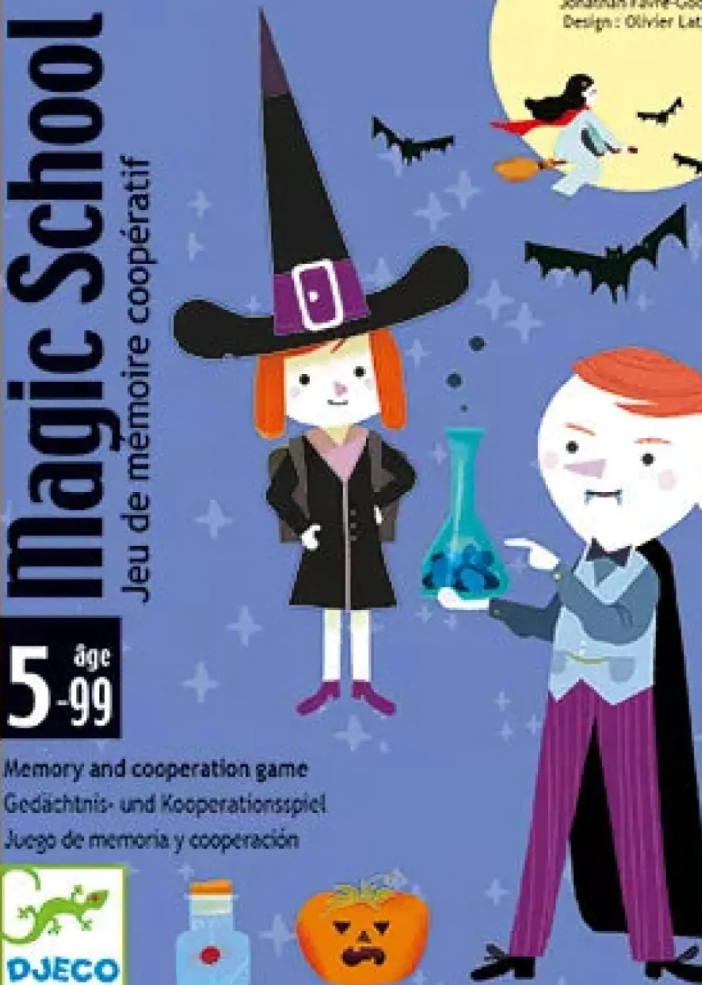 Aim of game : to pass the magic exam you will have to join forces and give each owner the right magical object. Wield your wands! Working together, players must match the magical objects to their owners. At the beginning, all the cards are shuffled and placed in a pile, face-down, on the table. On their turn, each player draws a card, shows it to everyone and puts it face-down on the table. If the players think that the card drawn matches a card that is already on the table, they put it on top of it. Otherwise, they place it next to it. When all cards have been drawn, the 16 pairs created are checked. The players have won if they have managed to match at least 10 pairs.