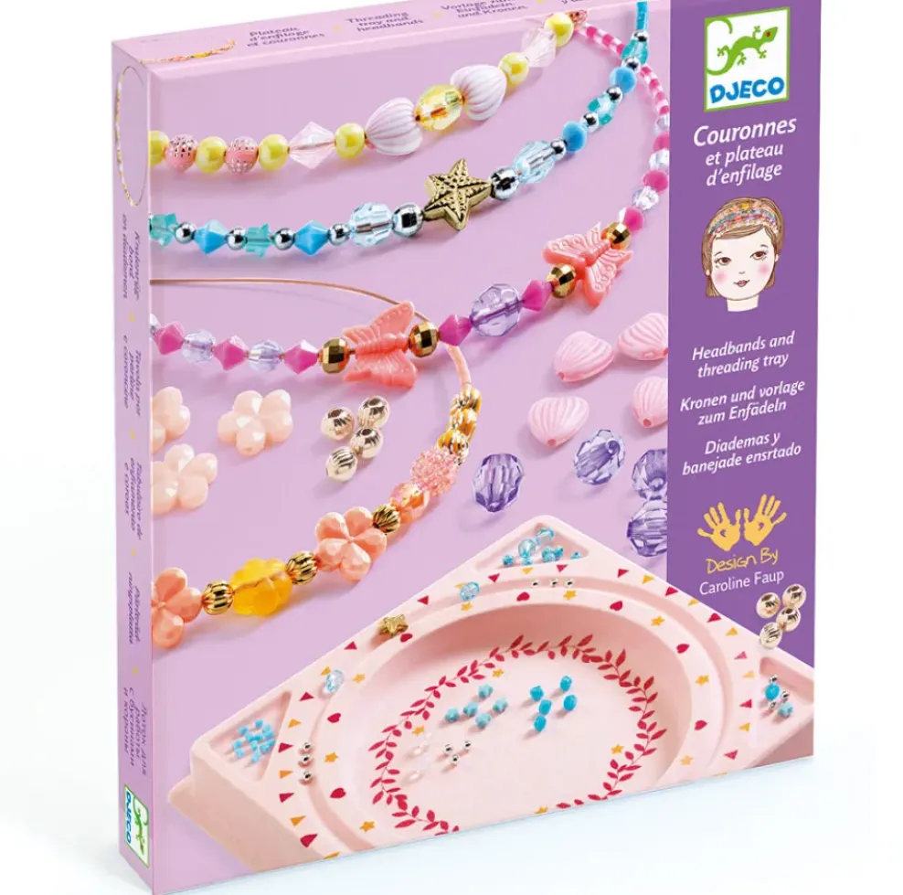 A bead kit and threading tray for making 4 headbands. Children follow the designs shown and place the beads onto the threading tray one by one, then thread them in order onto the Alice band. 4 beautiful beaded headbands to create for yourself or gift to others!