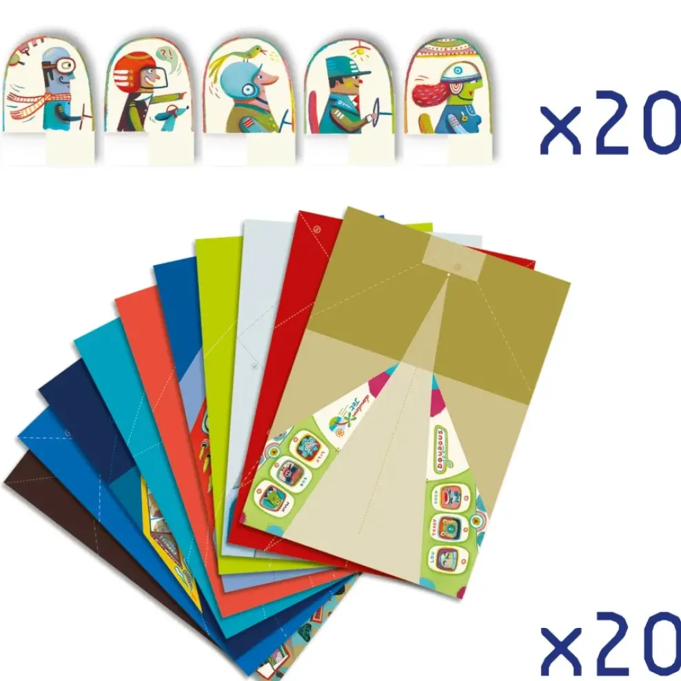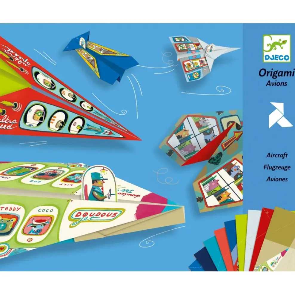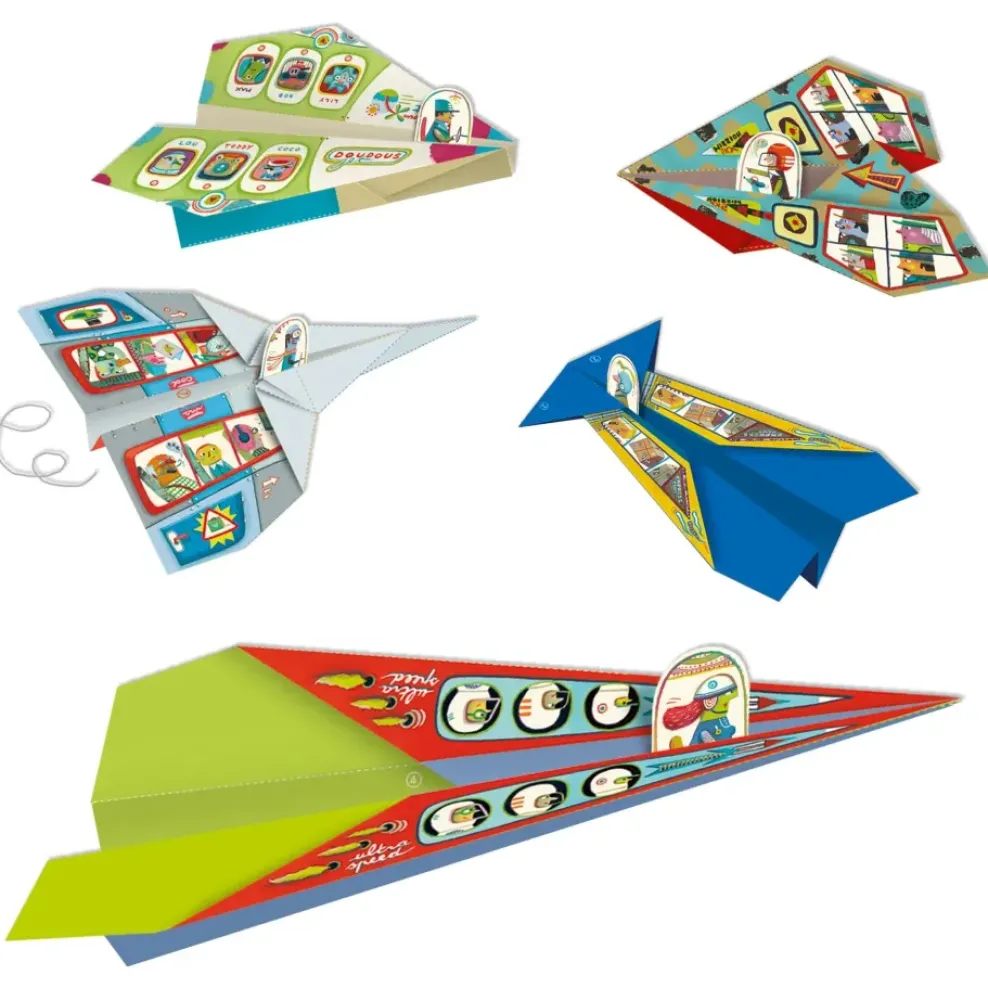 An origami set to create 2 paper airplanes. Children choose one of the 5 designs provided and fold their sheet following the instructions in the booklet. Simply add the pilot sticker, and it’s time for take-off!