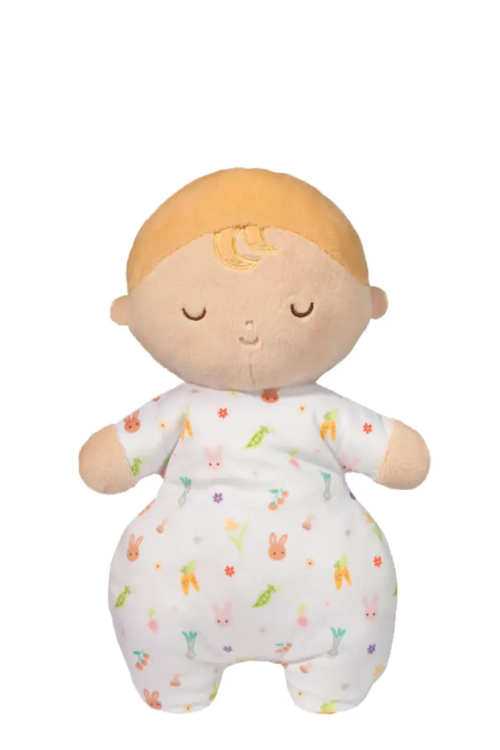 This soft baby doll plush is a paw-somely beloved gift for Spring newborns! An innovative spin on soft dolls, this snuggly friend comes swaddled in a removable bunny-themed blanket. We love the embroidered carrot closure, cute bunny ears, and extremely soft pastel pink material. The plush blonde baby doll is wearing a white onesie patterned with pastel bunnies, veggies, and flowers. It’s ready for hours of interactive pay! Ages 0+, Machine wash.