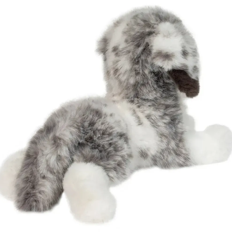 Lovable and soft, Skylar, our DLux Australian Shepherd stuffed animal showcases the bi-blue variation of the breed’s popular blue merle coat pattern! High quality plush materials depict the attractive gray and white marbling, while resilient polyester fill and weighted paws create a floppy friend who’s as fun to pose and play with as she is to hug and cuddle. Skylar’s ears are fringed with dark gray plush and her richly colored eyes have been enhanced with delicate airbrushing to further their lifelike appearance. Additional features include a soft, leatherette nose and detailed jowls. Let yourself be captivated by our pup’s sweet charms, Skylar the plush Aussie is the next best thing to a real dog!