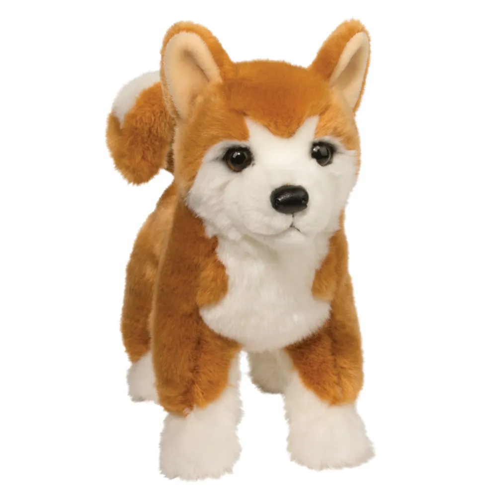 This feisty 16″ Shiba Inu plush makes a point of proving himself. Whether it’s showing off that he’s the fastest and cutest of all the other dogs or stubbornly insisting that his way is the right way, he’s sure to prove himself as a lovable cuddly companion to you. From his black leatherette nose to his fluffy arced tail, Dunham was made with the discriminating dog lover in mind. His design features the golden orange coat, small triangular ears, and curled tail of the Shiba breed and his facial detailing gives this stuffed dog an extraordinarily engaging expression that is sure to win fans. Dunham is designed in an upright standing pose but his high quality materials and soft fill make him an appealing soft plush toy that is ideal for hugs and cuddles when he’s not running around howling about how awesome he is.