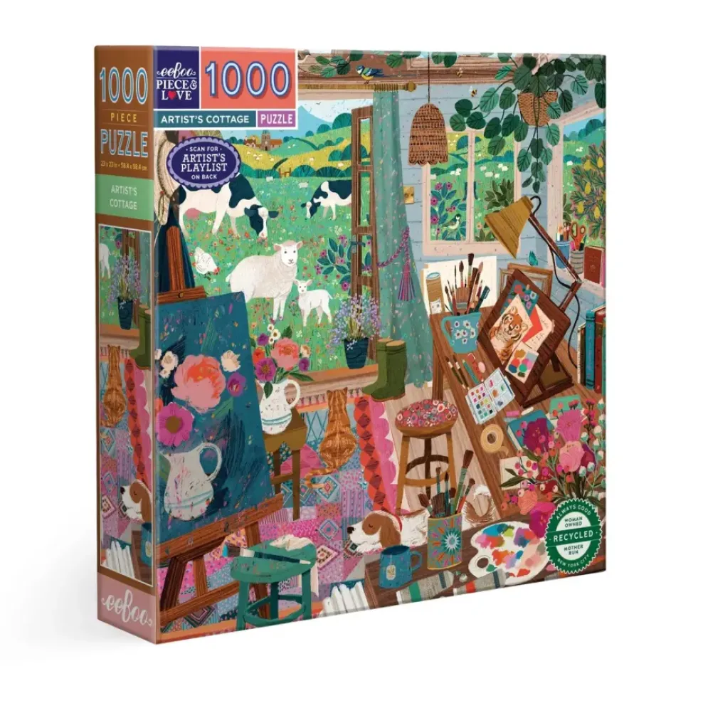 •Includes a curated, puzzle playlist from the artist. Scan the QR code on the back of the box to hear the songs the artist listens to while they work.