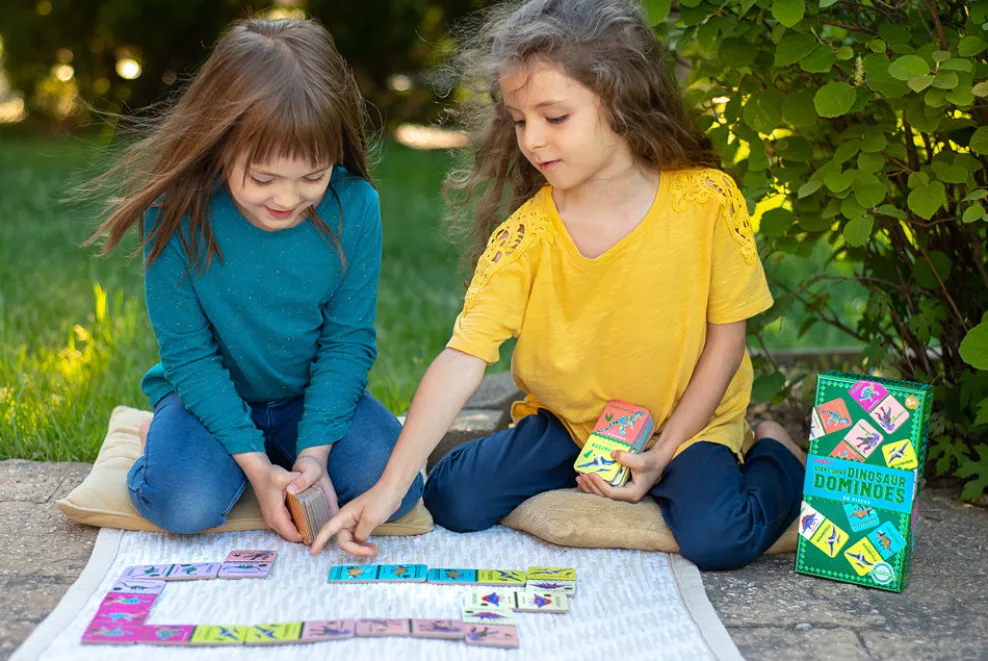 These beautiful jumbo dominoes add dinosaurs and shiny holographic foil to a classic family game that develops matching skills. The classic game of dominoes is one the whole family can enjoy together.