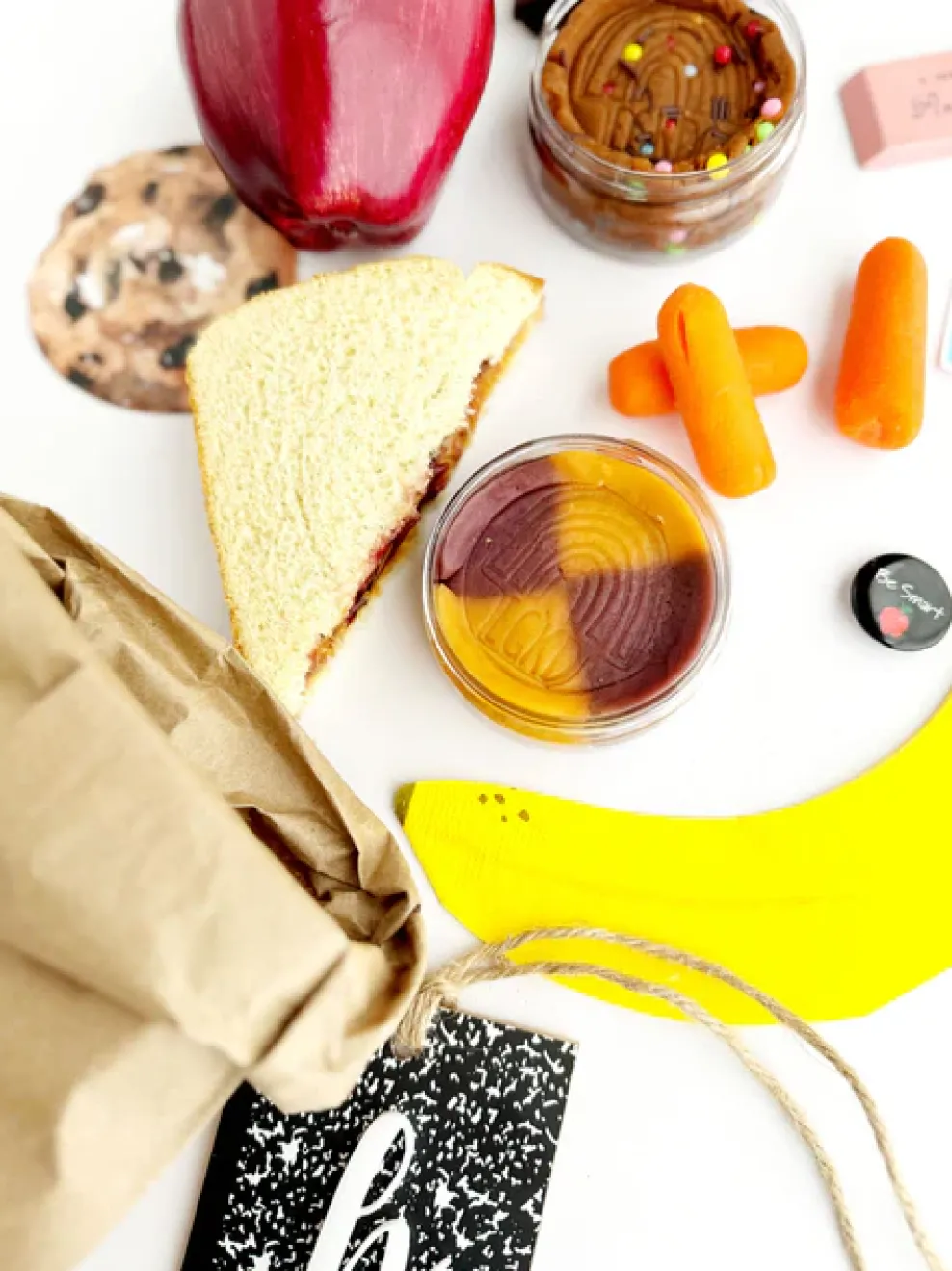 Includes: 4 oz of Golden Brown and Purple (Peanut Butter and Grape Jelly) KidDough