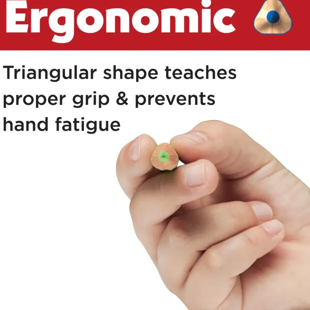 3.3mm pencils made from re-forested wood. Ergonomic, triangular shape that won’t roll off the desk. They are perfect for learning the proper grip. Leads are break-resistant and will not fall out.