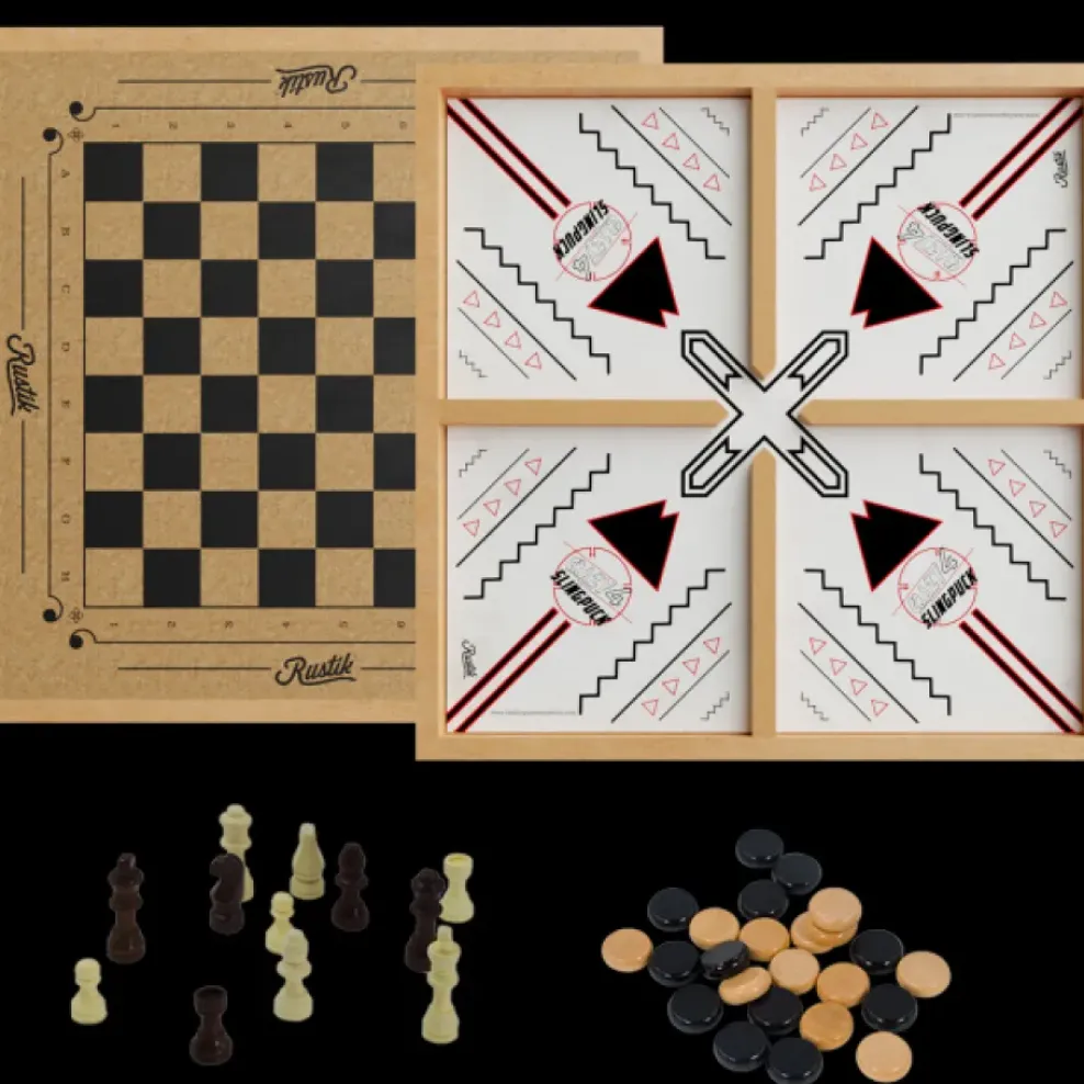 Family Games America Rustik 3-in-1 Slingpuck/Shuffleboard/Chess/Checkers 3-in-1 Hot