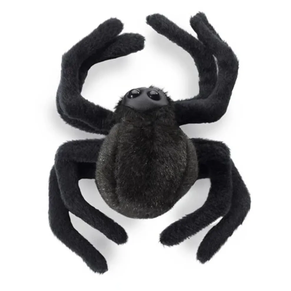 Arachnophobes won’t mind the whimsical Mini Spider finger puppet. Featured in all black this not so scary creature has gangly long legs, a bulbous abdomen, and fangs on a leatherette face with big beady eyes.
