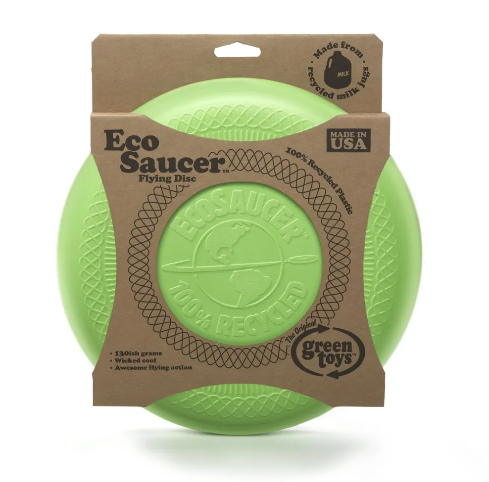 When it comes to environmentally friendly good times, the sky’s the limit with this groovy flyer. The Green Toys EcoSaucer™ Flying Disc is made in the U.S.A. from 100% recycled plastic grocery bags that save energy and reduce greenhouse gas emissions. Weighing in at 130ish grams, it soars with Good Green Fun™. For ages 5 and up.
