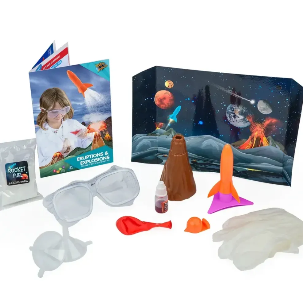 The Eruptions and Explosions kit is perfect for any budding scientist that loves to get hands on and watch experiments bubble and fizz. Complete 5 experiments, including launching a rocket, making a volcano, and inflating a balloon without blowing – all using the reaction of bicarbonate and vinegar. After you’ve done each experiment, you can learn about how volcanoes, rockets and natural forces work with an educational booklet inside. This is the perfect fun STEM learning tool for both girls and boys. The kit comes with a model volcano, rocket, chemicals, and equipment including protective goggles and gloves.