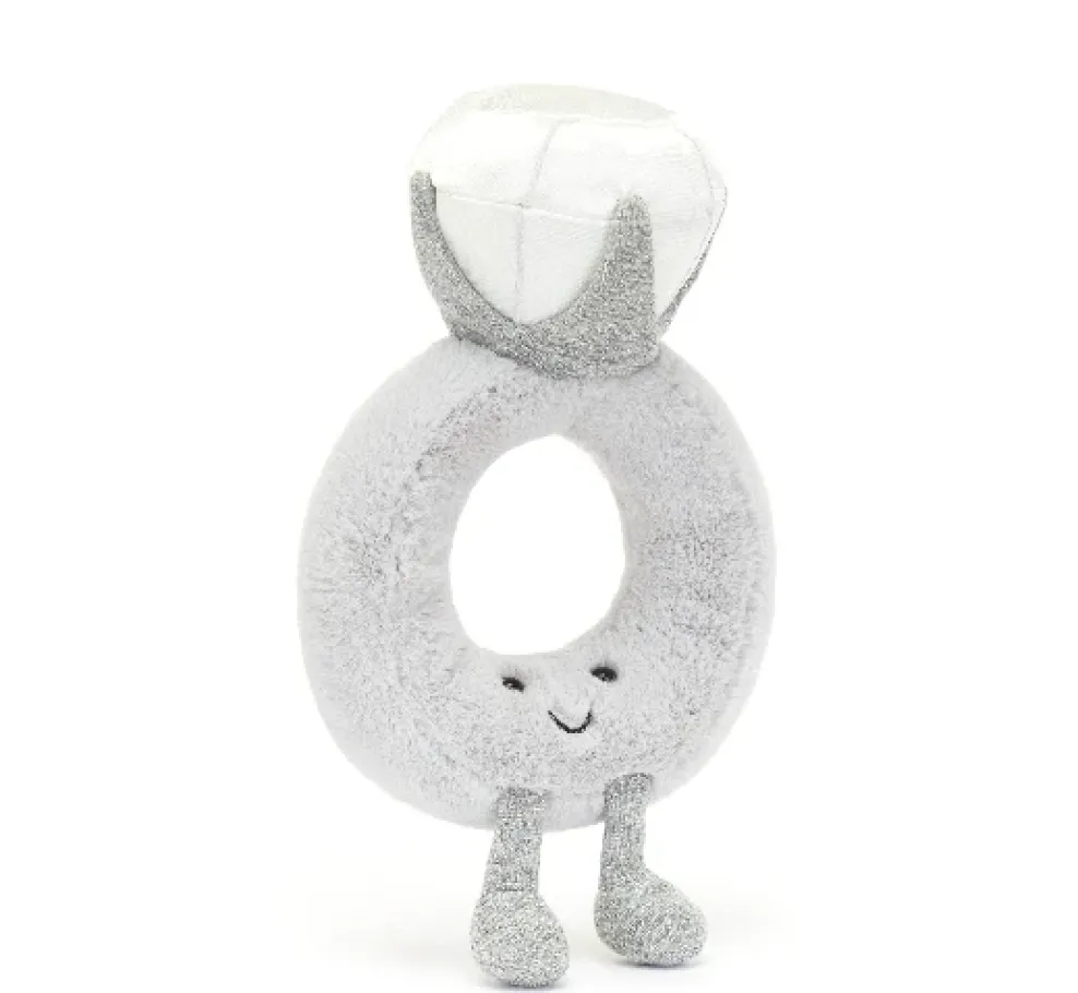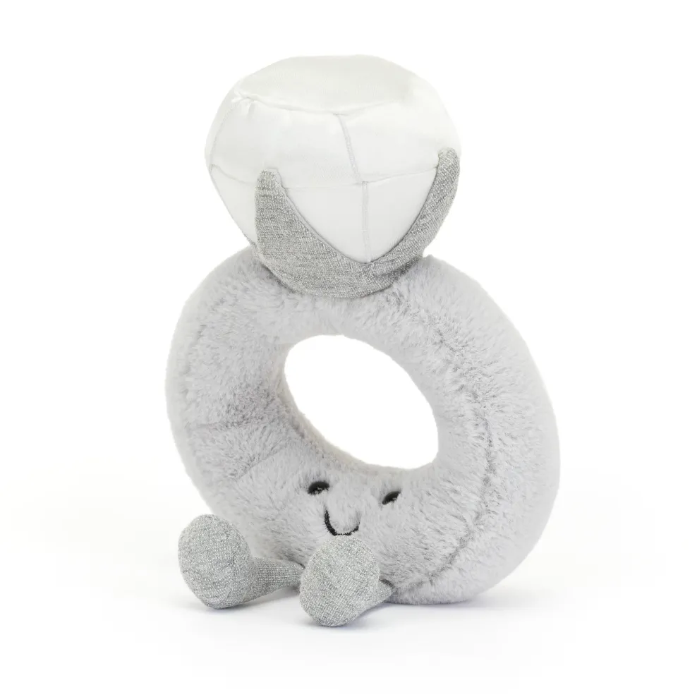 Say ‘I Do’ to Amuseable Diamond Ring. Snuggly soft in silvery-grey fur and topped with a silky white diamond, this smiley ring has glittery jersey legs to skip down the aisle.