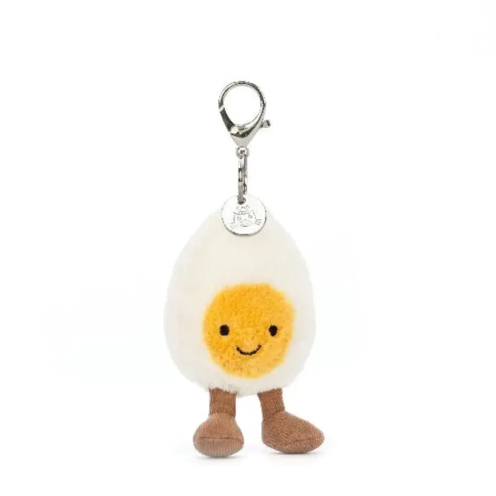 Keep your day sunny side up with Amuseable Happy Boiled Egg Bag Charm. This cream and yellow egg has a stitched smile, brown cordy boots, and a metallic clasp fix your eggs onto one basket, or bag!