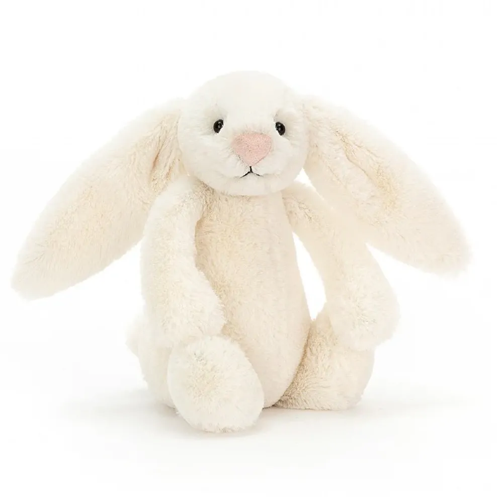 Bashful Cream Bunny is a dream in super soft clotted cream fur! With long floppy ears and a squidgy tum, this bonny bunny is the perfect companion for naptimes or playtimes!