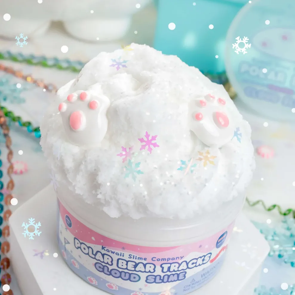 There is nothing more satisfying than a fluffy white Cloud Slime that sparkles in the sun and drizzles like a dream. Each Polar Bear Tracks smells like a crisp snow day, with notes of frosty musk, icy spring water and juniper berry and comes topped with 3 adorable paw “tracks” in the cutest soft pink color. Polar Bear Tracks is one of our best selling Holiday Slimes, a perfect gift for any Slime crazed family member.
