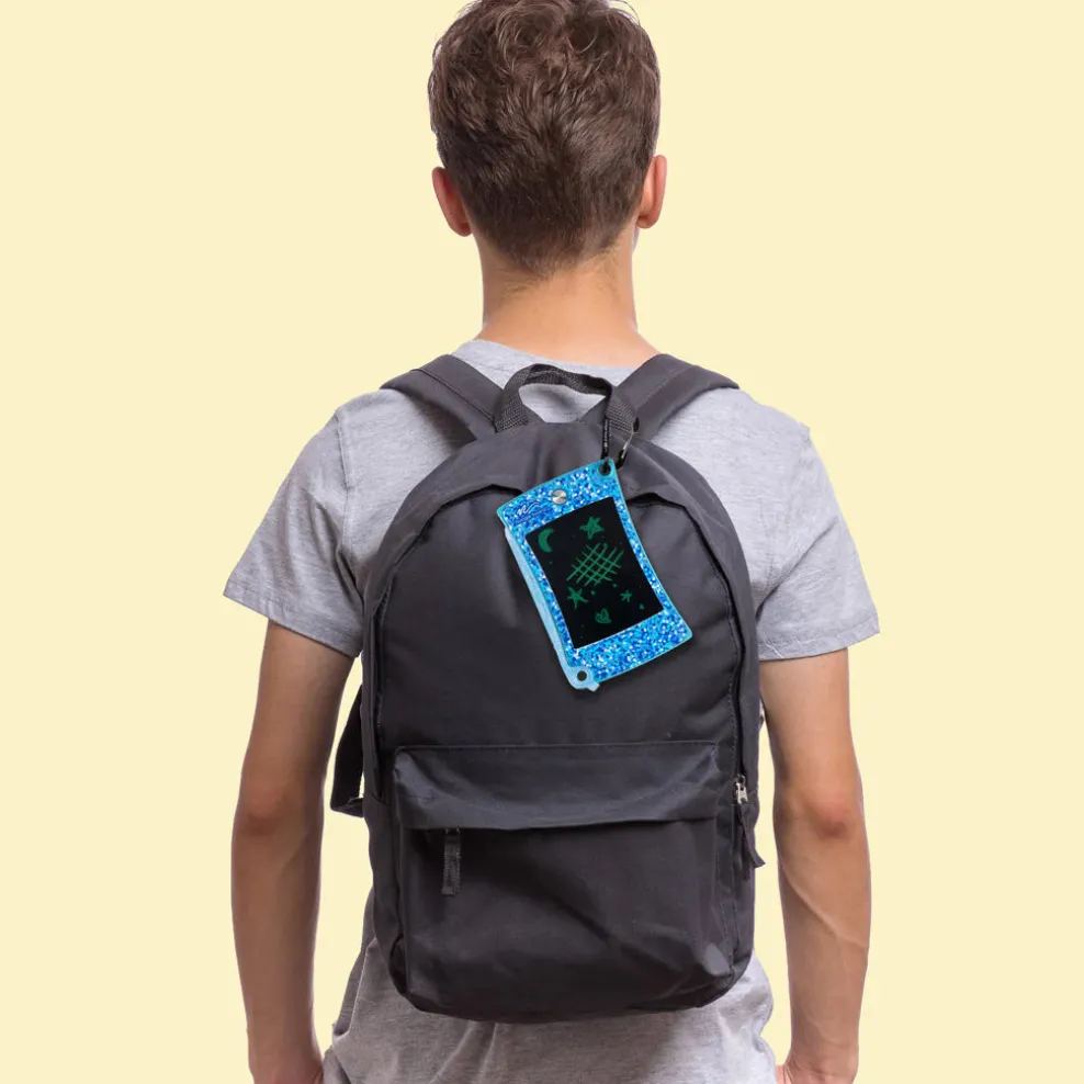 Here’s why the Jot™ Pocket is a must-have: It’s stylish and Fun! Choose from three eye-catching shades in the Shimmer Collection that make it not just a writing tablet, but a trendy accessory! Attach it to your backpack or bag with the handy carabiner clip, and you’re ready to shine. Draw or write with the special shimmering stylus or even your fingernail! It’s so easy and fun to use, you’ll want to doodle all day long.