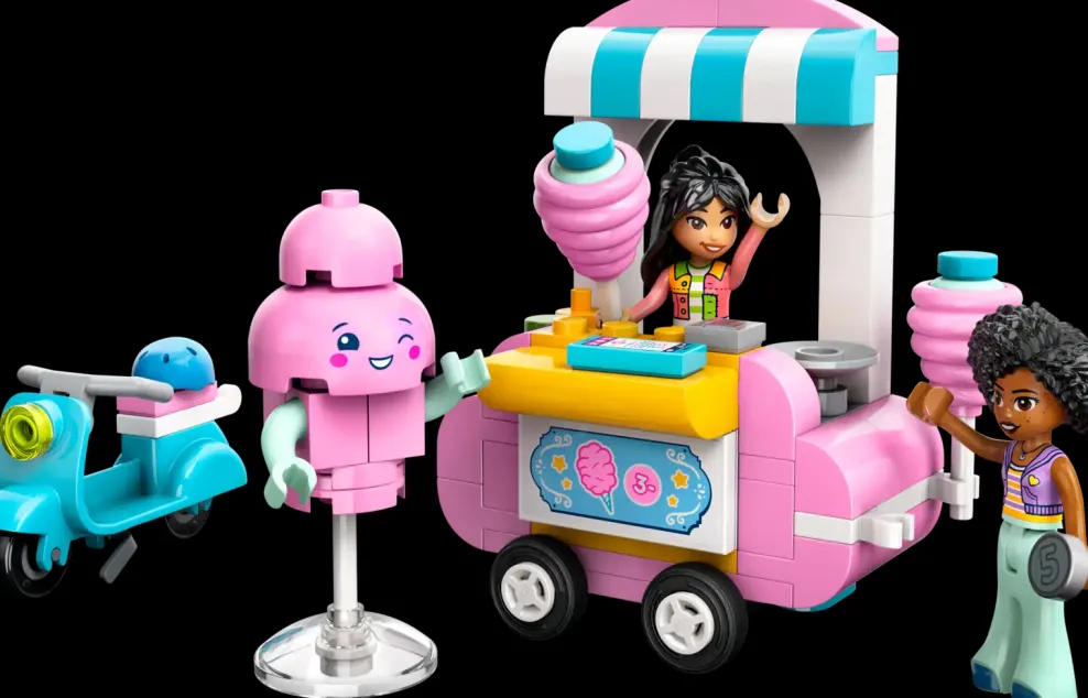 - Pretend-play building kit – This LEGO® Friends Cotton Candy Stand and Scooter set for girls, boys and young builders aged 6 and up comes with 2 minidolls, a food cart and a scooter with a kickstand
