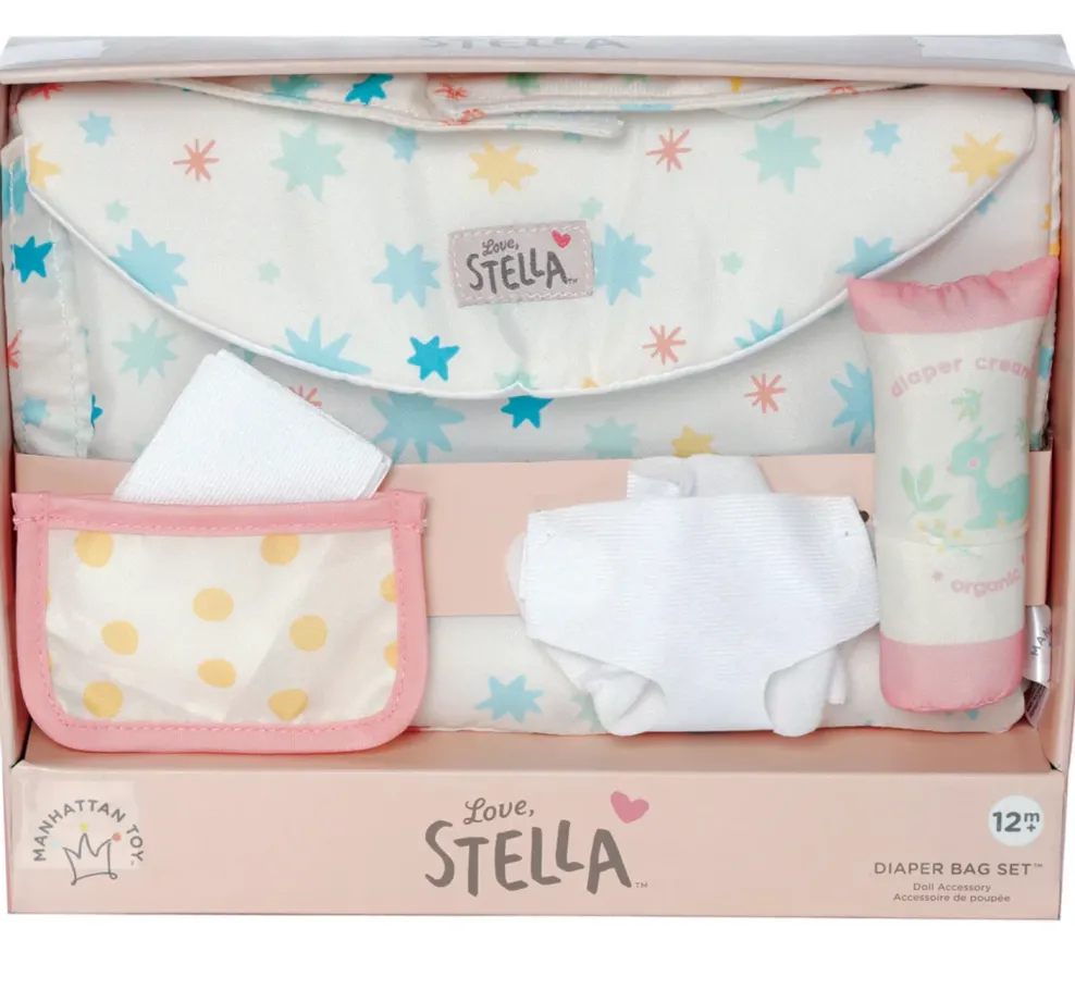 Diaper changing is a breeze with this delightful diaper bag set. Soft doll diaper changing set includes a convertible diaper bag that folds open to a soft changing mat, a diaper, 3 wipes in holder, and a diaper cream tube. Doll sold separately.