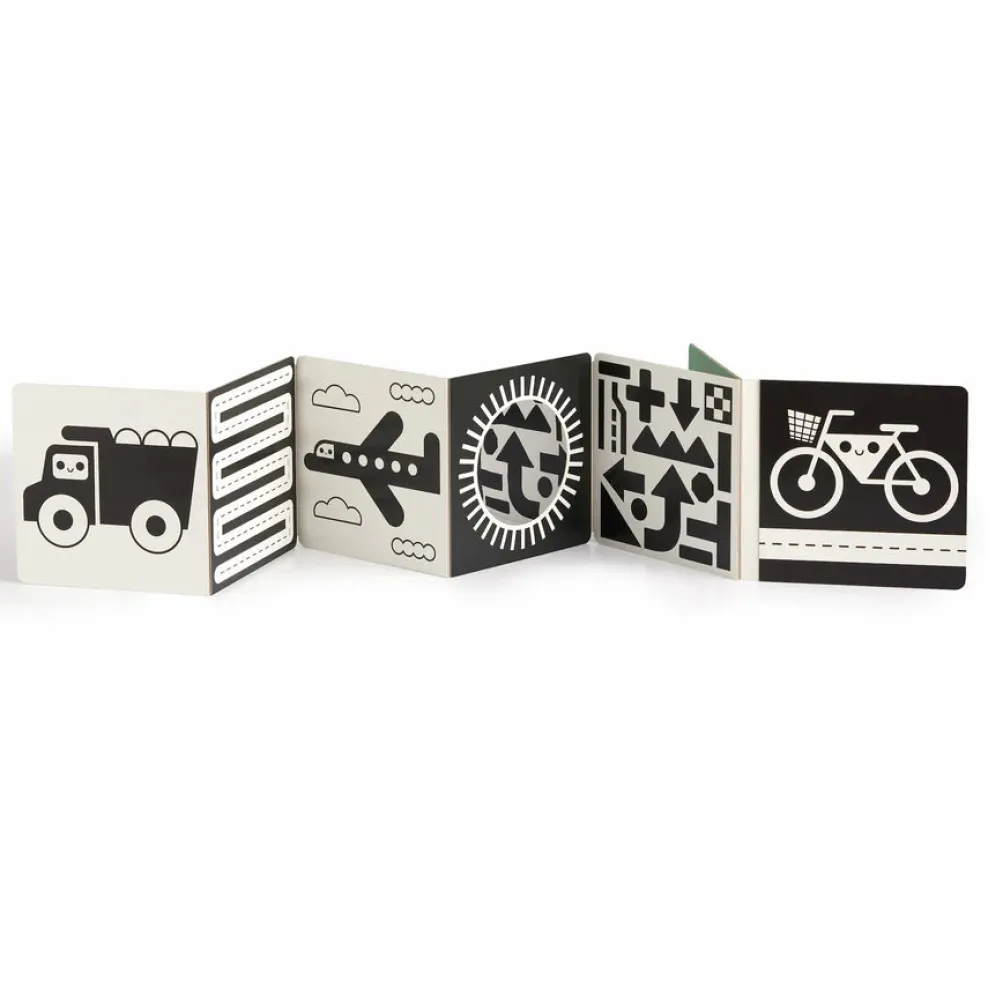 - Accordion book stands upright for tummy time