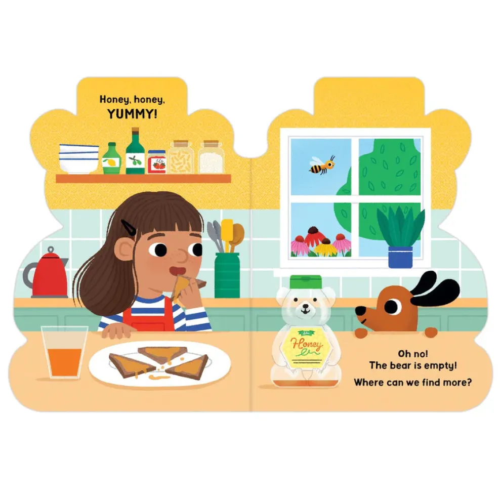 Uncover something new with the exciting and colorful Honey Bear Hive Shaped Board Book from Mudpuppy. The uniquely shaped board book features simple text and bright and bold artwork to encourage and enlighten the youngest of readers about the creation of delicious honey.