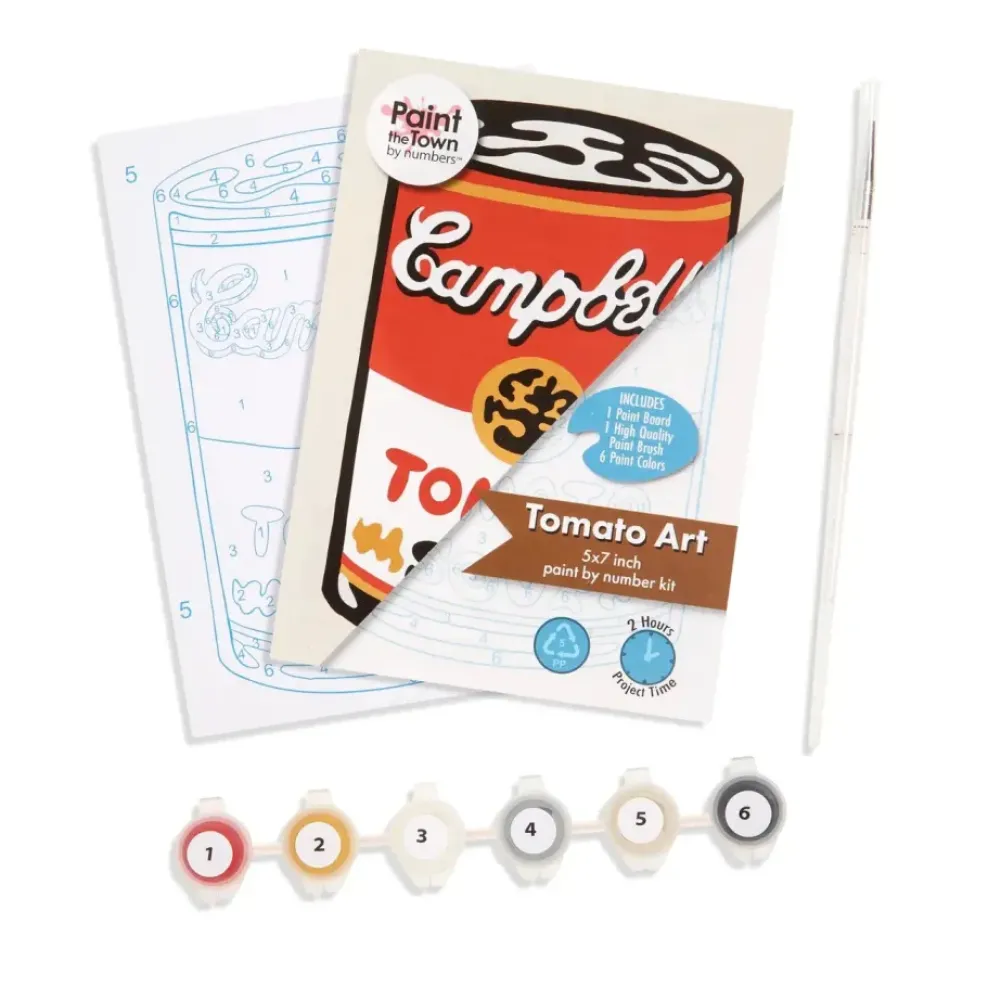 Our Andy Warhol inspired Tomato Soup Can is a shorter project, about two hours. It pairs well with our Julia Child ‘Bon Appètit’ kit in any kitchen!
