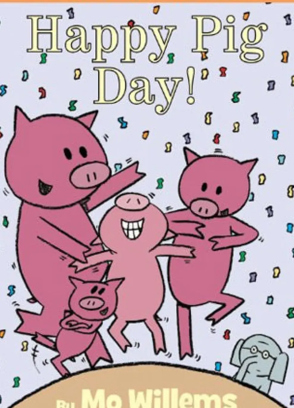 In Happy Pig Day! Piggie celebrates her favorite day of the year! But will Gerald the Elephant be included in the festivities?
