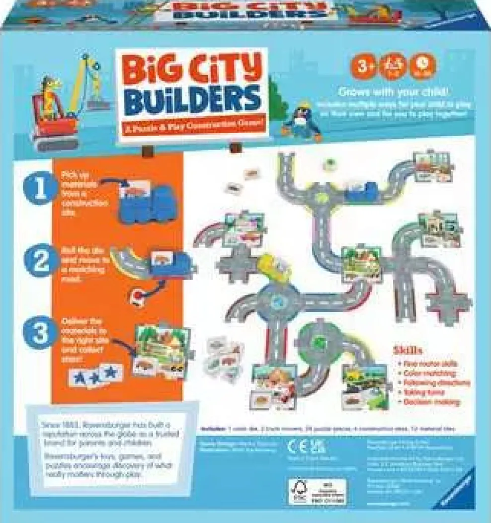 Ravensburger preschool games grow with your child! Big City Builder includes multiple ways for your child to play on their own and for you to play together. Since 1883, Ravensburger has built a reputation across the globe as a trusted brand for parents and children. Ravensburger’s toys, games, and puzzles encourage discovery of what really matters through play.