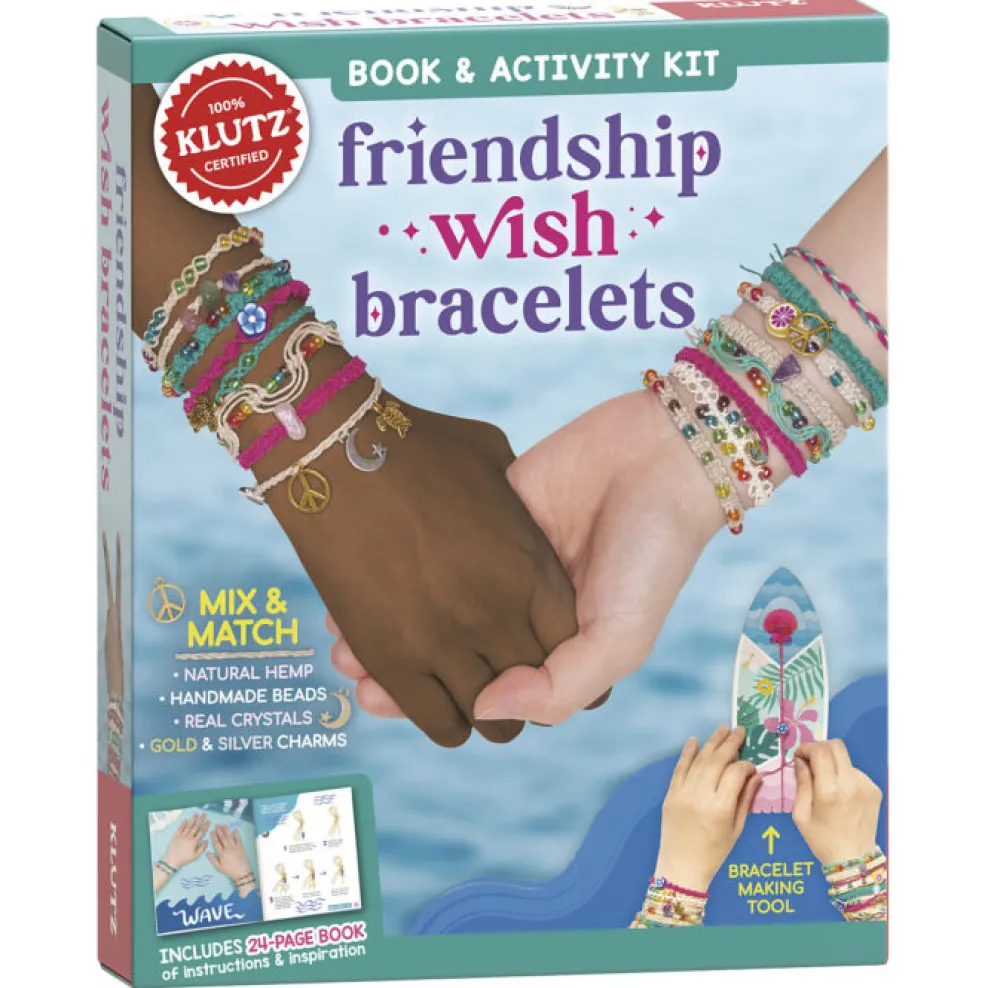 Make a wish as you make your bracelet and tie it on your wrist. When your bracelet falls off (after you’ve worn it for a long, long time), your wish will come true! Wish bracelets are made by knotting hemp and adding beads along the way, as you repeat the include ‘wish spell to encourage positive, hopeful thoughts. With three colors of hemp, a rainbow of iridescent beads, handmade clay beads, gold and silver charms, and real crystal rock beads, crafters can customize their own creations to suit their style.