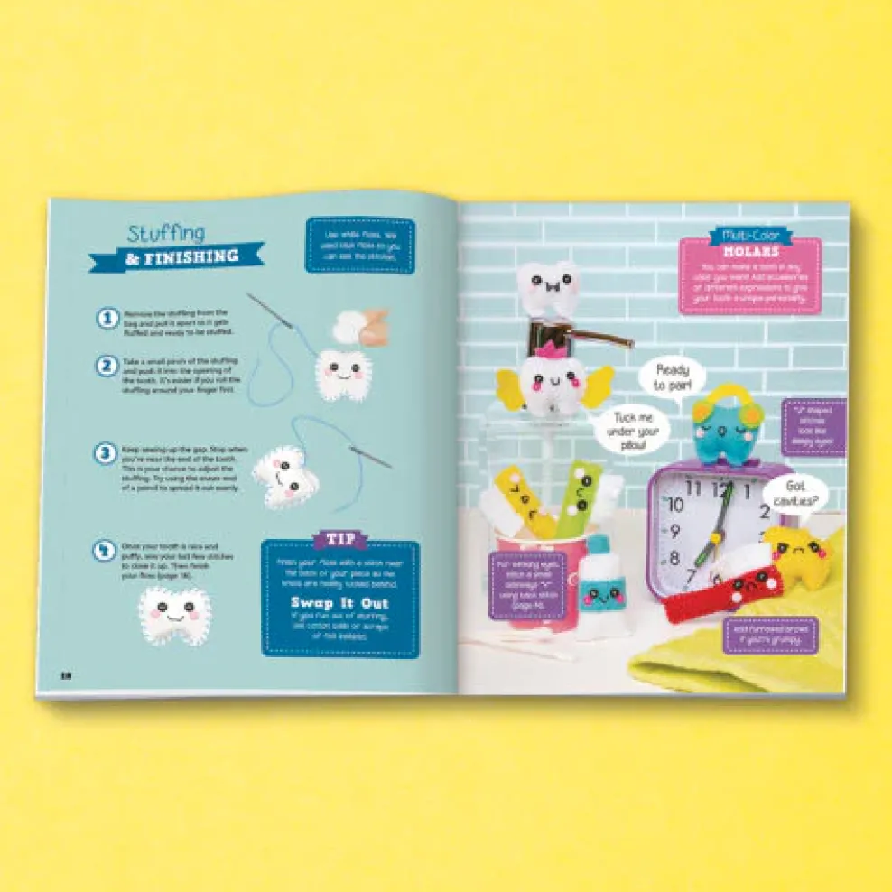Stitch and stuff adorable plushies like a calculator, camera, and bag of chips. Beginners will find everything they need, including a 48-page book with step-by-step instructions, tips, and techniques. The kit comes with all the supplies to get started from sewing patterns, stuffing, 2 embroidery needles; plus embroidery floss and felt in multiple colors. No trip to the craft store required!