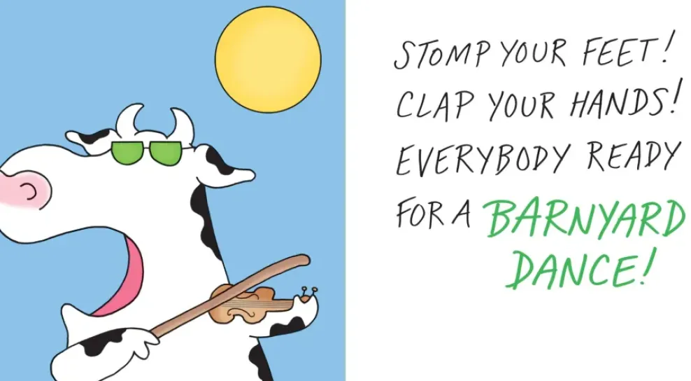 Everybody sing along—because it’s time to do-si-do in the barnyard with a high-spirited animal crew! From Boynton on Board, the bestselling series of board books, here is BARNYARD DANCE, with Sandra Boynton’s twirling pigs, fiddle-playing cows, and other unforgettable animals. Extra-big, extra-fat, and extra-fun, BARNYARD DANCE features lively rhyming text and a die-cut cover that reveals the wacky characters inside. Guaranteed to get kids and adults stomping their feet. The Barnyard Dance! song, performed by John Stey, is available for download. For ages 0-4.