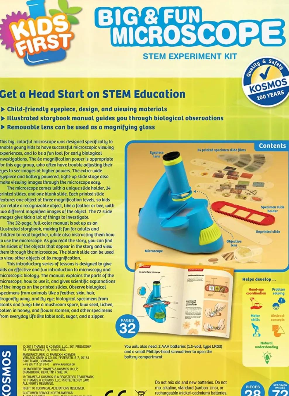 - 32-Page, full-color storybook-style experiment manual encourages language development and comprehension.