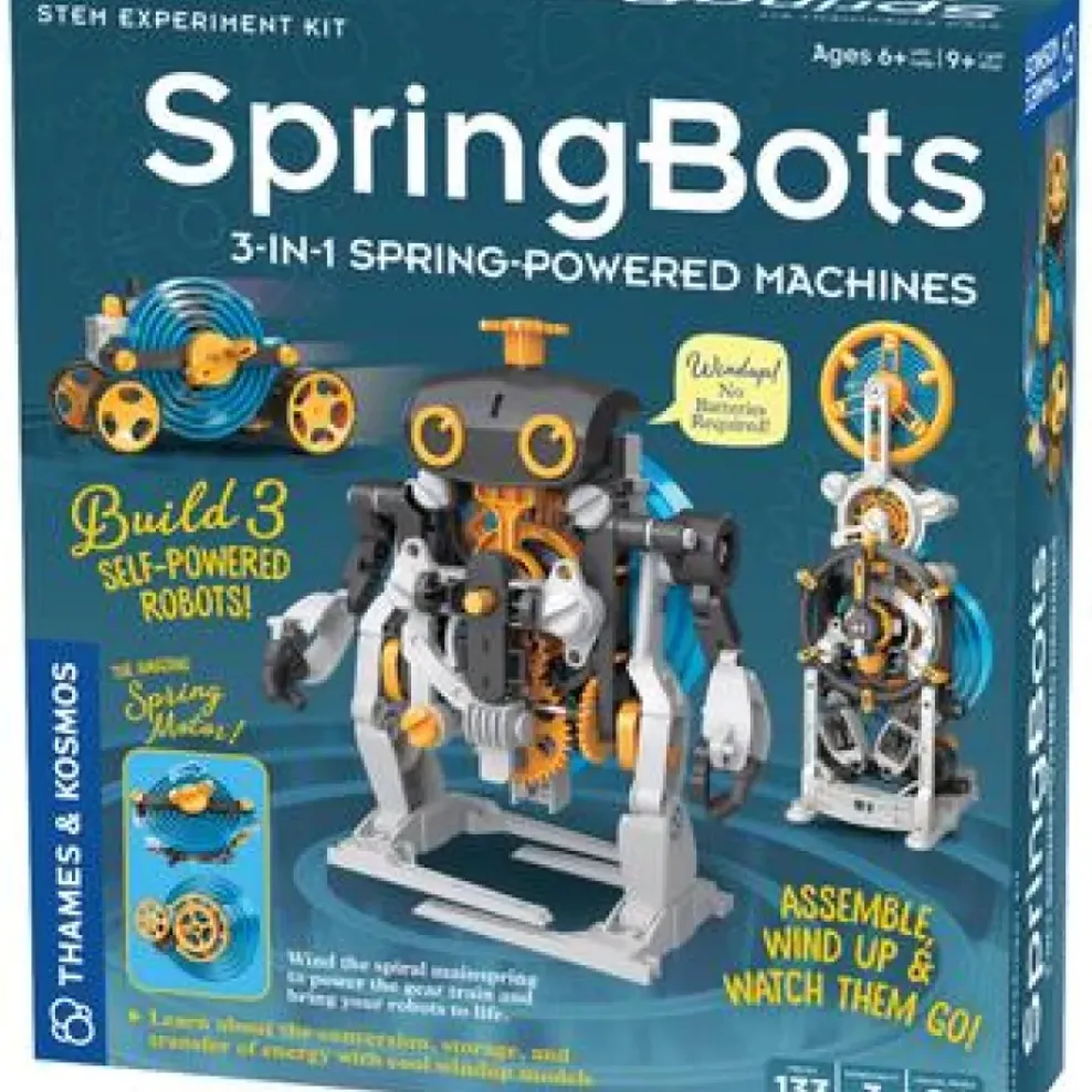 The secret behind these fascinating machines is a power source called a mainspring — a spiral-shaped spring that stores up energy when wound up by hand, and then converts that stored energy back into motion when it discharges. The mainspring inside the robot turns gears which enable it to march forward on two legs. The race car zooms across the floor as its mainspring uncoils and turns its wheels. The countdown timer uses a more complex system of springs, gears, ratchets, and linkages to slowly tick down the seconds as it discharges — for a countdown of up to six minutes. As you assemble these models one at a time from over 130 pieces, you will learn about the inner workings of spring-powered devices like wind-up toys and ticking mechanical clocks.