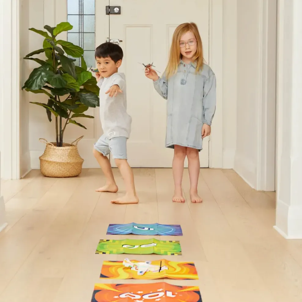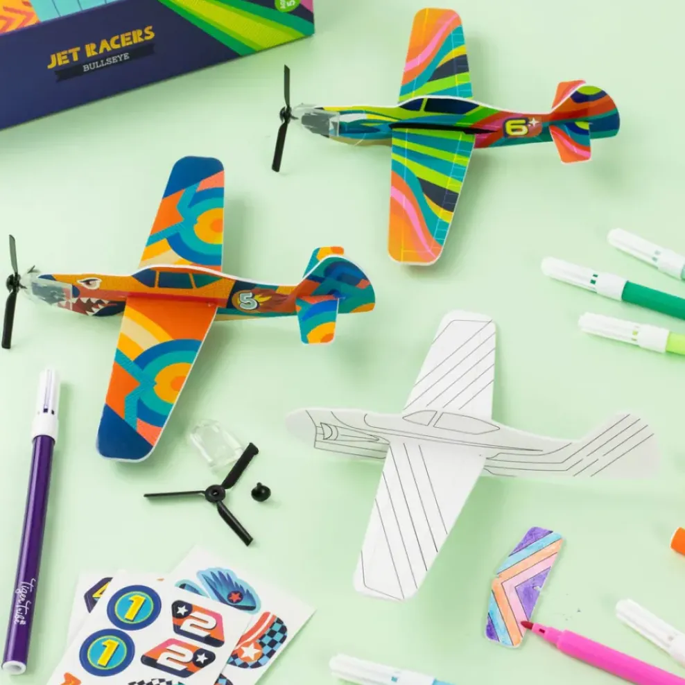 Great for solo or collaborative play, Jet Racers – Bullseye is a wonderful all-rounder activity: great for exercising fine motor skills and creative concentration and testing gross motor skills with flying and target practice.