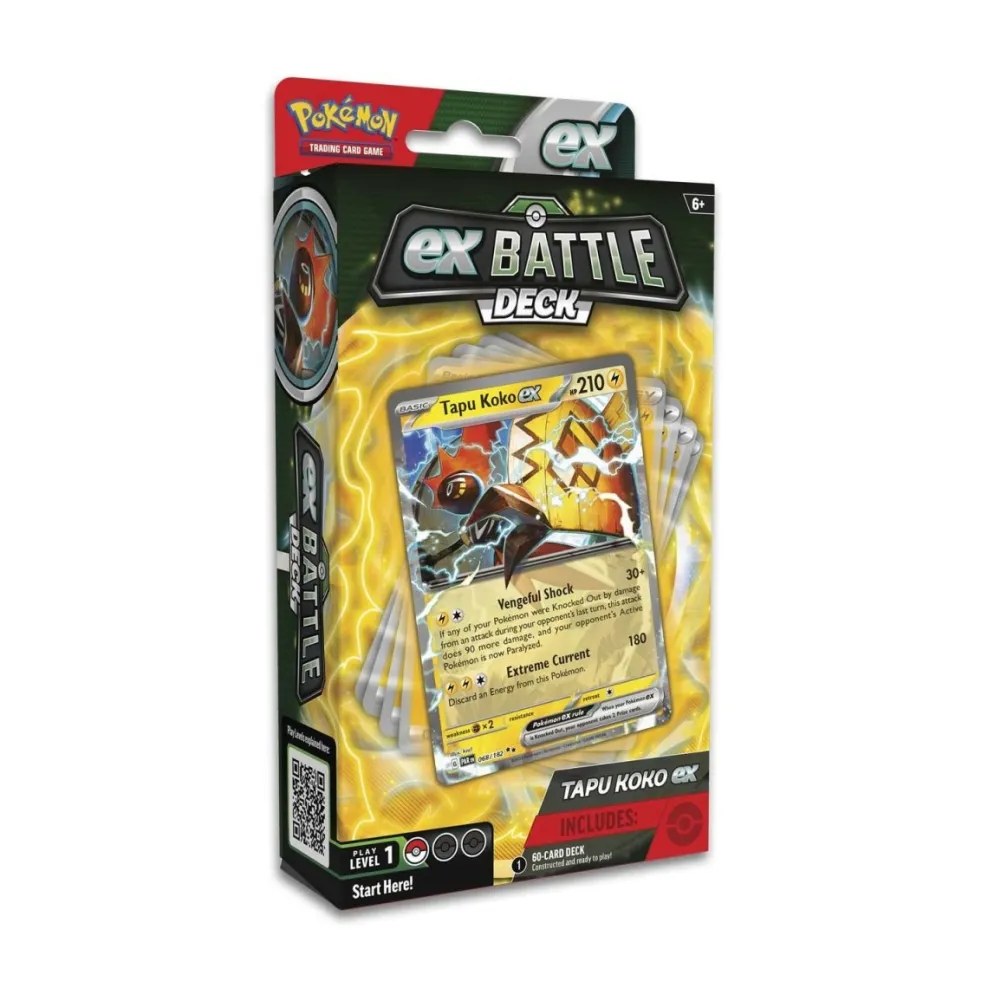 Powerful Pokémon ex are ready to charge onto the battlefield in the new Pokémon TCG: ex Battle Decks! Each 60-card deck is led by an exceptional Pokémon ex and includes everything you need to play right away. Let the battle begin!